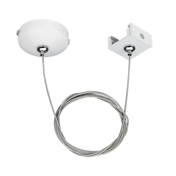 Тросовый подвес с металлической чашкой Ø50x19мм для трехфазных треков. Длина троса 2 м. Цвет белый. Выдерживает вес максимум 6 кг. При использовании с треками и аксессуарами другой серии возможно отличие по цвету.