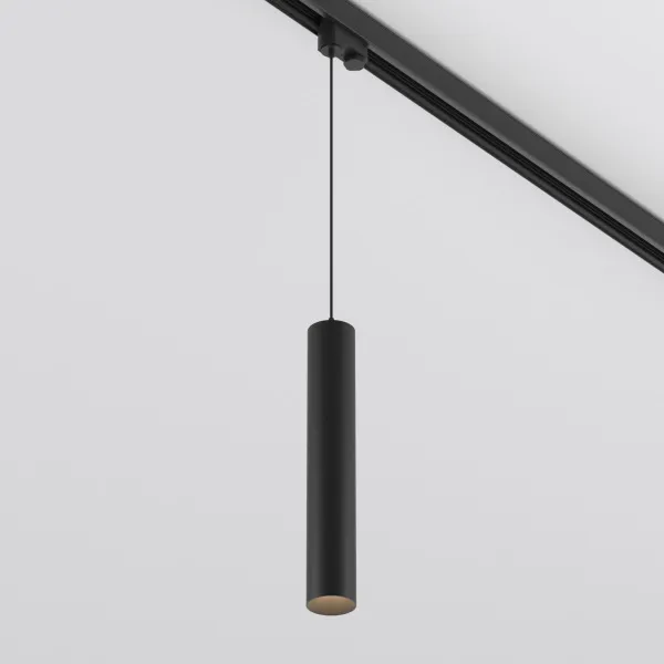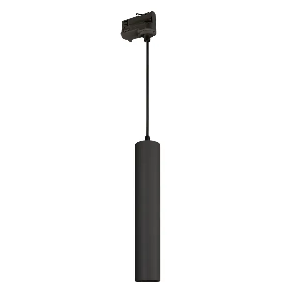 Светильник подвесной для треков/шин 4 провода. Мощность 9 Вт, св. поток 825 лм, 93 лм/Вт, теплый 3000 K, CRI>90, угол 40°, напряжение питания 230 В. Черный корпус из алюминия, материал рассеивателя PC, степень защиты IP20. Размер: диаметр 50 мм, длина 310 мм, длина подвеса 1500 мм. Монтаж на трек 3-фазный. Драйвер 30-45 В, 220 мА, пульсация <1%.