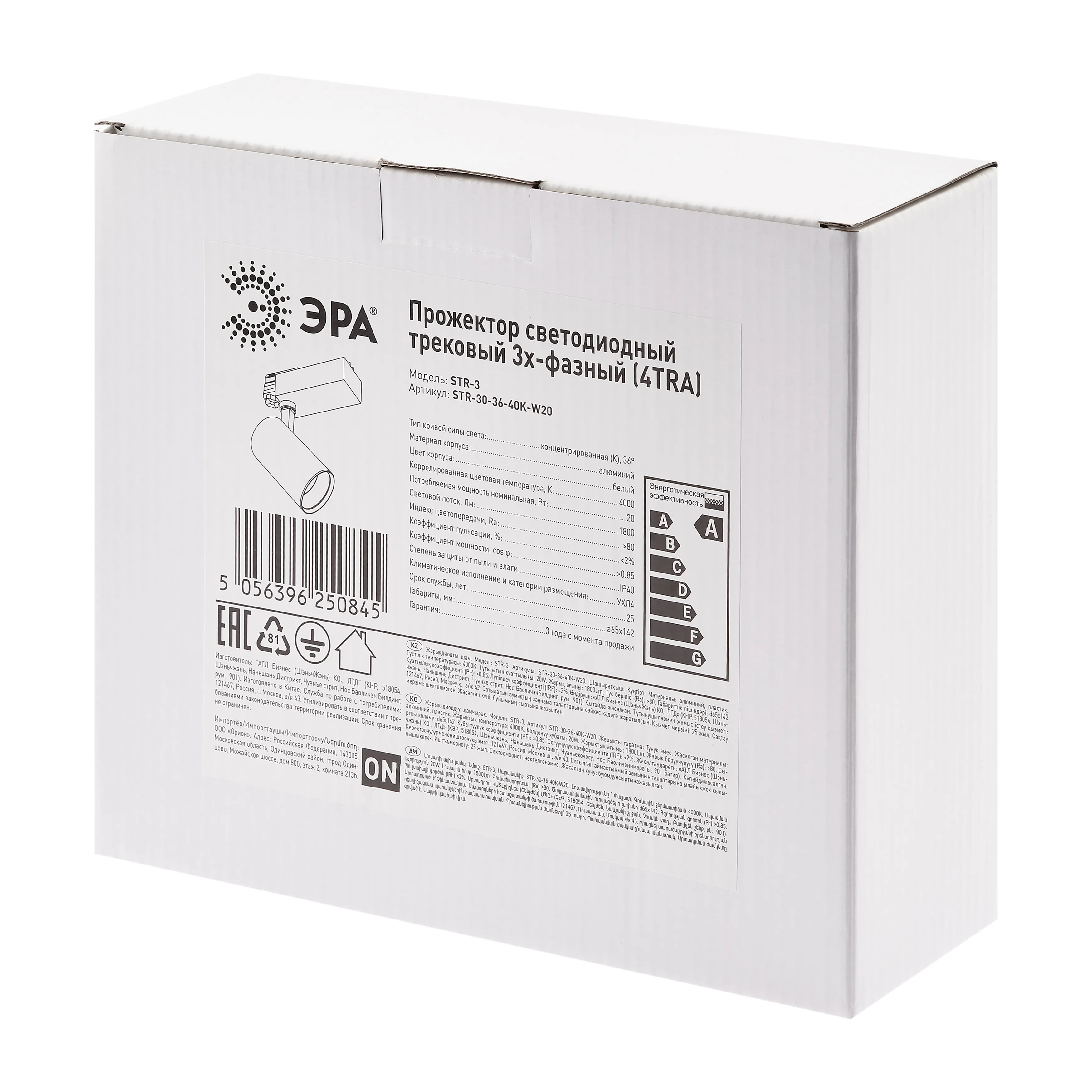 Серия трехфазных трековых светильников от компании Эра. Модель белого цвета и цветовой температуры 4000К( нейтральный белый), мощностью 20 ватт. Угол рассеивания света составляет 36 градусов, что является золотым стандартом для трекового освещения. Светильник имеет классический, минималистичный дизайн, который позволяет его использовать как в проектах освещения комерческих площадей, так и в современных интерьерах. Инженеры компании Эра создавая модель STR-30 использовали электронные компоненты высокого качества, что гарантирует долгую и бесперебойную работу. Светильник STR-30, это симбиоз технологичности, надежности и разумной цены.