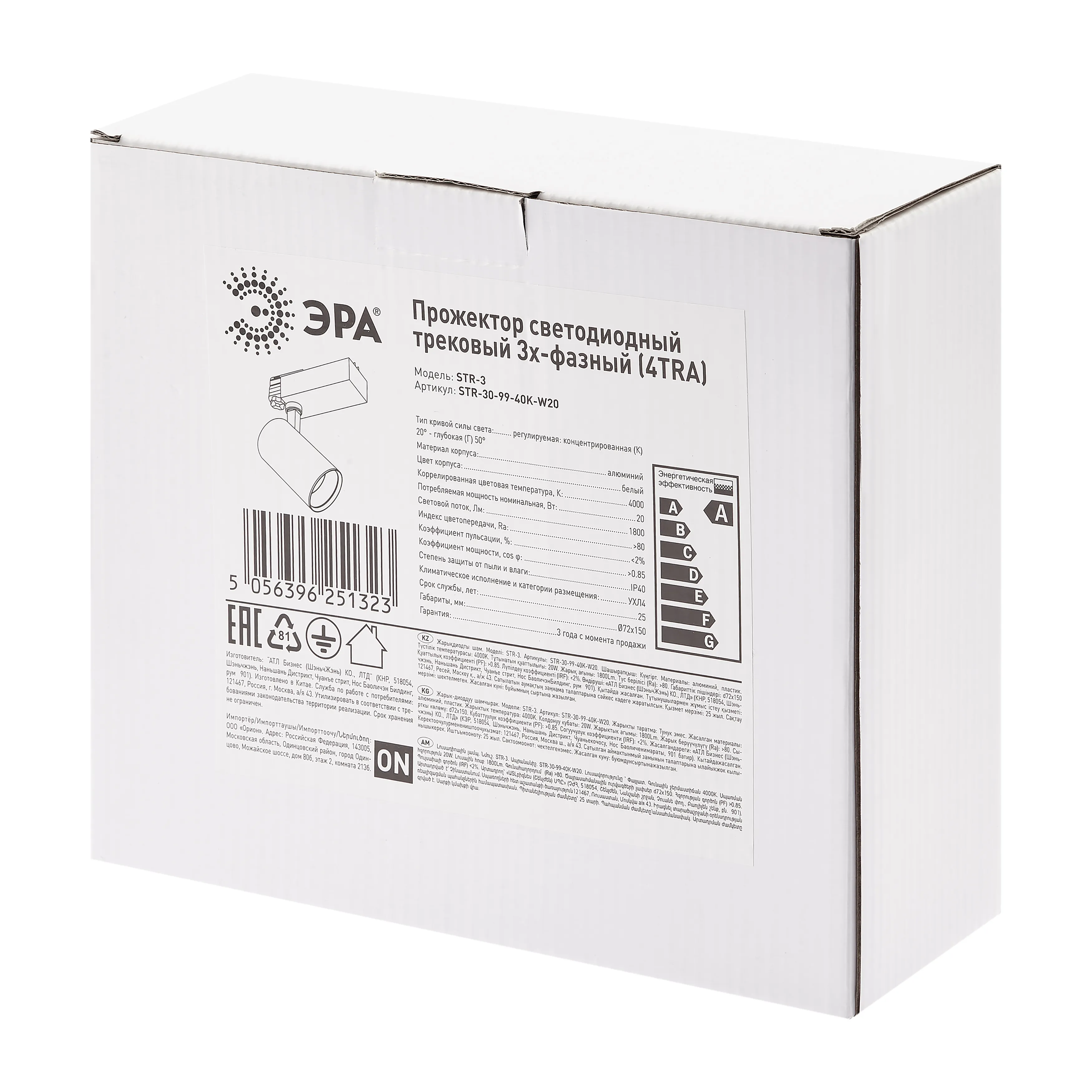 Серия трехфазных трековых светильников от компании Эра. Модель белого цвета и цветовой температуры 4000К( нейтральный белый), мощностью 20 ватт. Светильник оснащен регулируемой оптикой, которая позволяет настраивать угол рассеивания света в диапазоне 20-50. Светильник имеет классический, минималистичный дизайн, который позволяет его использовать как в проектах освещения комерческих площадей, так и в современных интерьерах. Инженеры компании Эра создавая модель STR-30 использовали электронные компоненты высокого качества, что гарантирует долгую и бесперебойную работу. Светильник STR-30, это симбиоз технологичности, надежности и разумной цены.