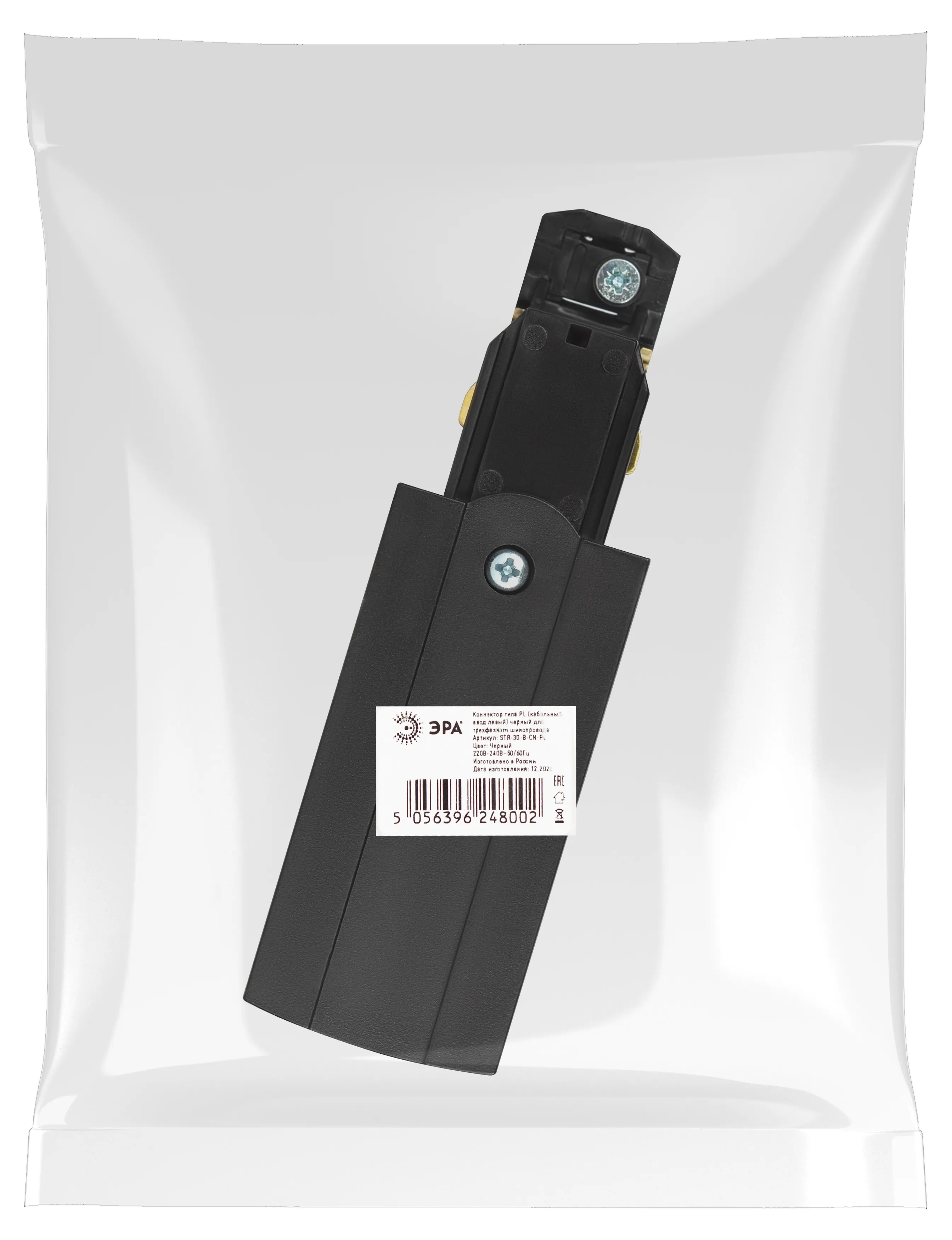 Коннектор для трехфазного шинопровода ЭРА типа PL кабельный ввод левый черный