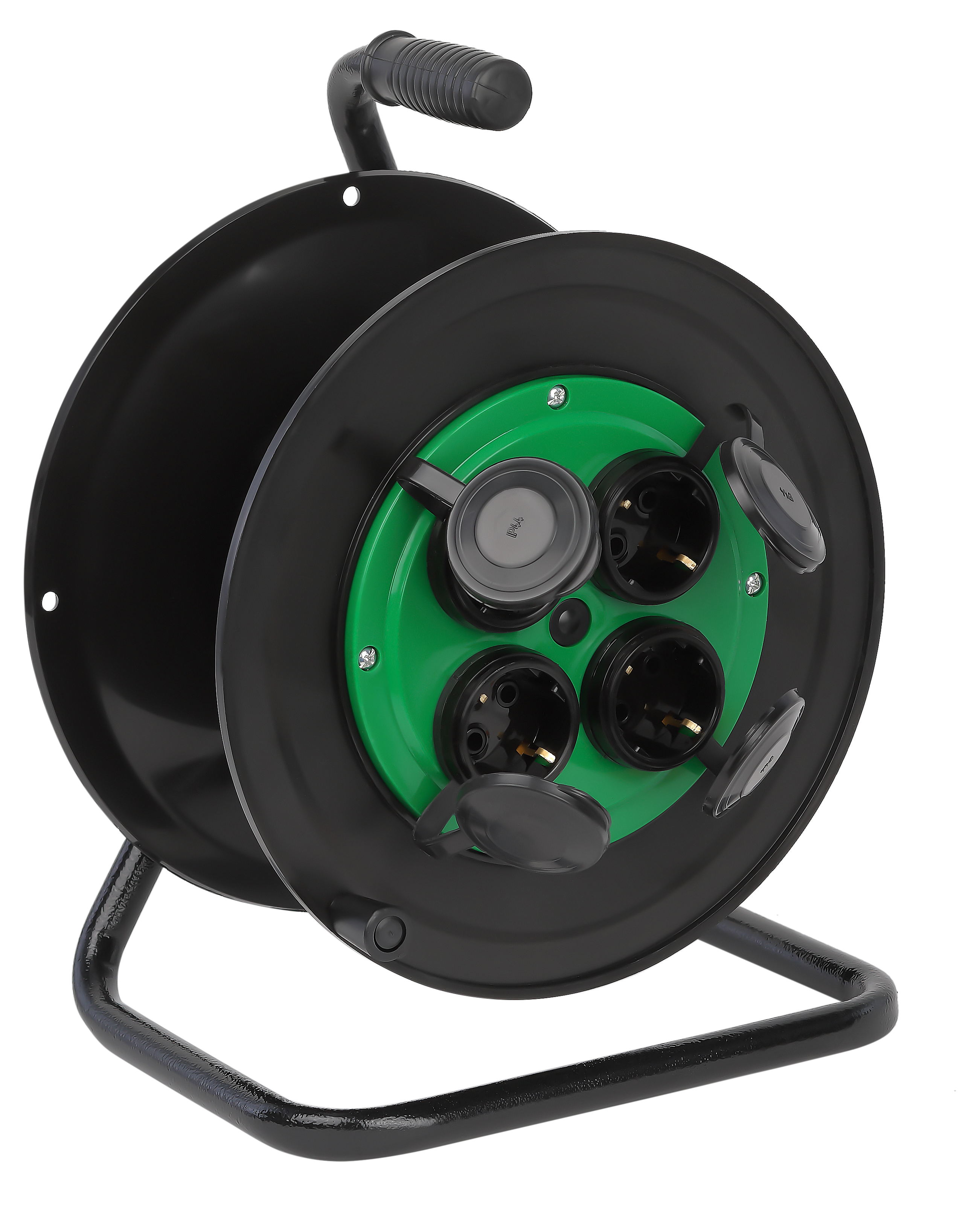 Катушка пластиковая 4 розетки с заземлением и защитным крышками. IP44