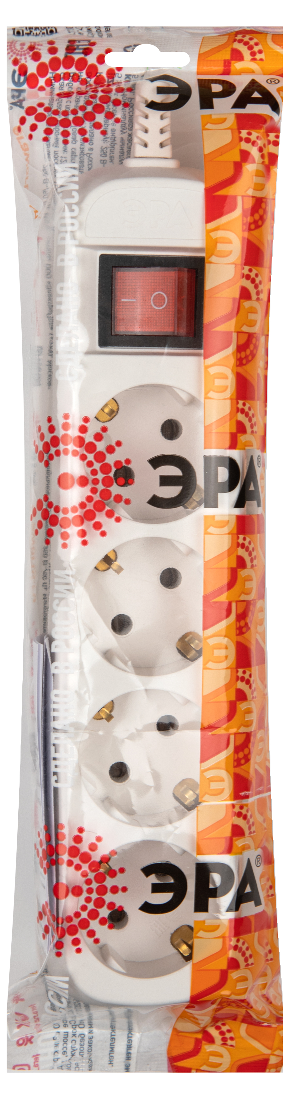 Колодка ЭРА KX-4es на 4 розетки с заземлением, с выключателем. Максимальная мощность - 16 А/3500 Вт. Для кабеля до 3х1,5мм2