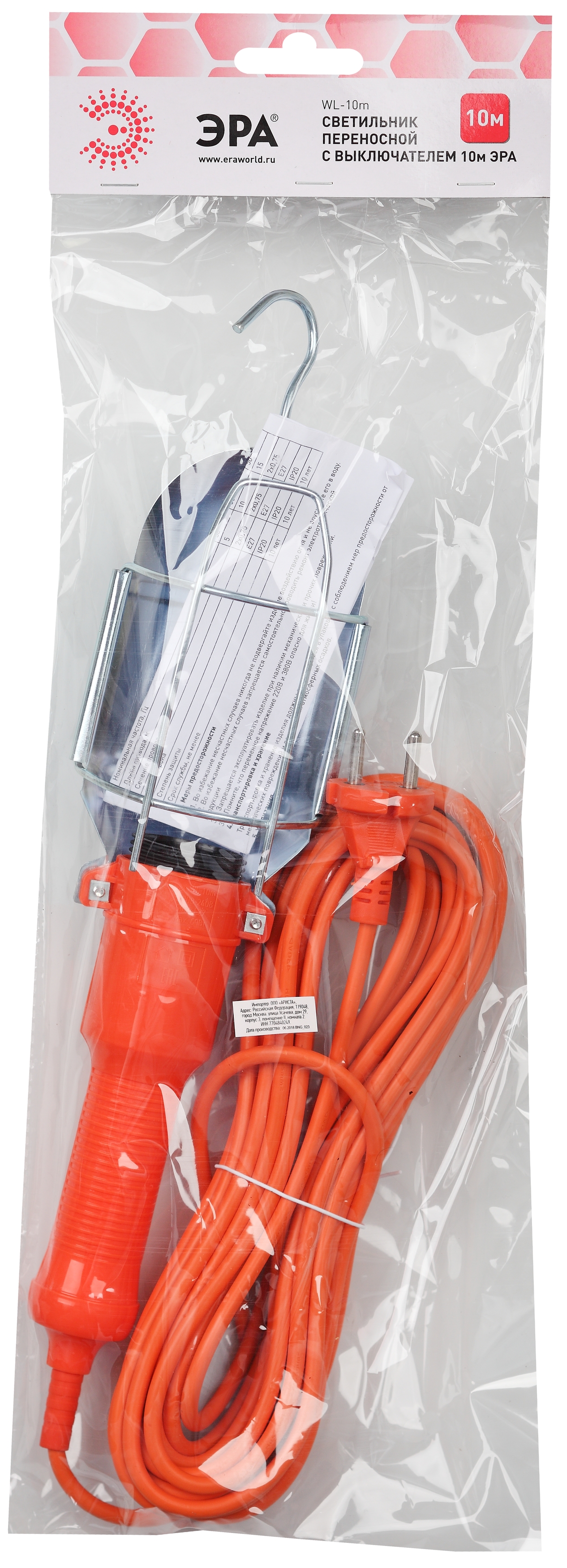 Переносной светильник с максимальной мощностью 60 Вт от бренда ЭРА прекрасно подойдет для подсобных или гаражных помещений, станет незаменимой вещью во время ремонта! Длина шнура составляет 10 м, что позволяет использовать лампу в любой части пространства. Пластиковый корпус неприхотлив в уходе, имеет небольшой вес. Светильник переноска подходит для ламп со значением цоколя E27. Металлическая вставка защитит от ожогов раскаленной лампочки и обеспечит мягкое рассеивание света. Крючок позволяет подвесить светильник для лучшего освещения. Длина в 50 см обеспечивает мобильность и компактность устройства. Приобретайте светильник переноску от компании ЭРА выбирайте удобство и качество!