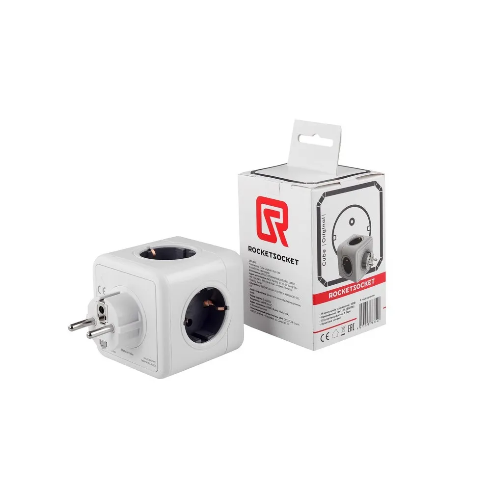 Тройник (разветвитель) RocketSocket Cube Original 5 Euro 16A, цвет белый-серый - оригинальная концепция RocketSocket с 5 розетками. Конструкция RocketSocket, позволяет разместить вилки таким образом, что они вряд ли будут блокировать друг друга.