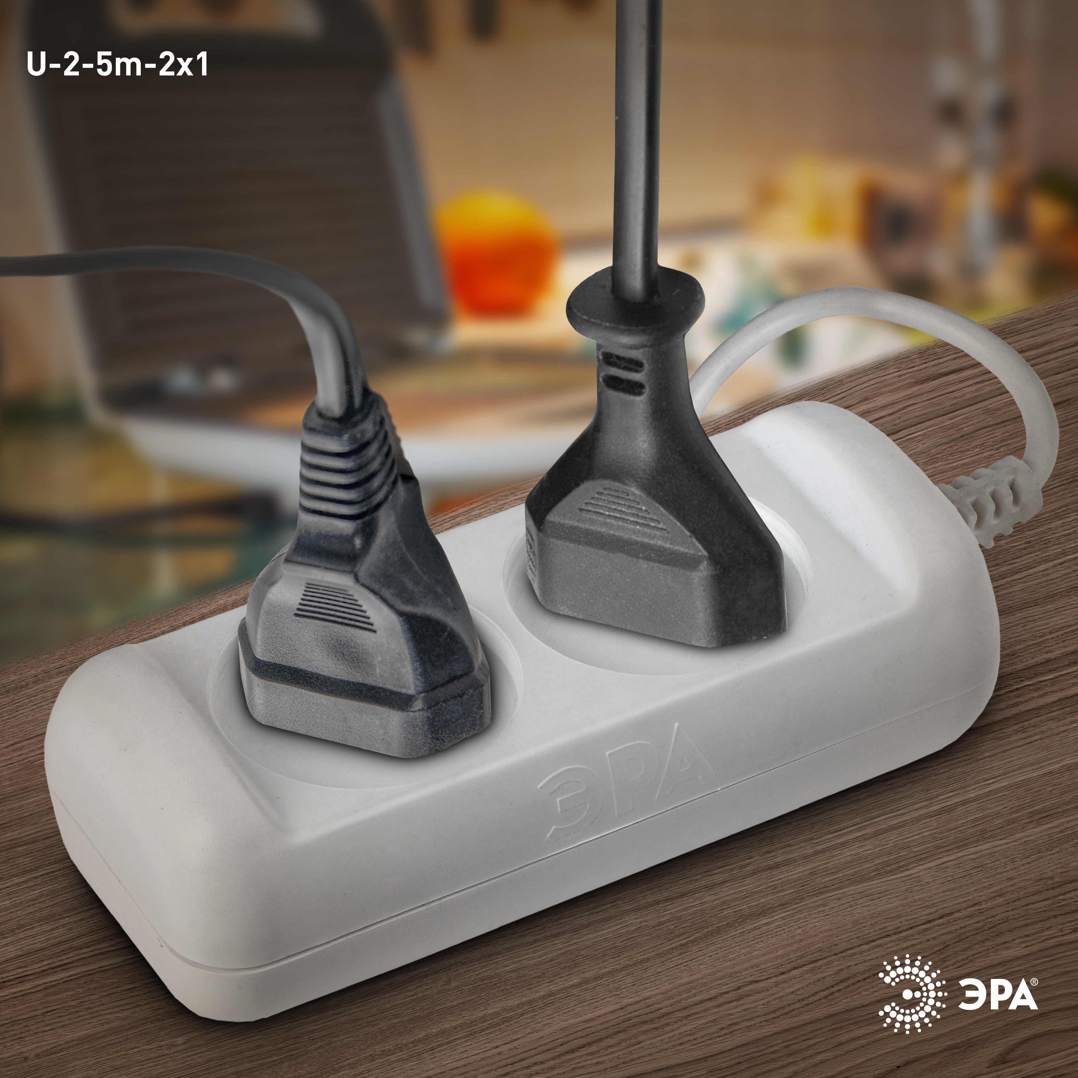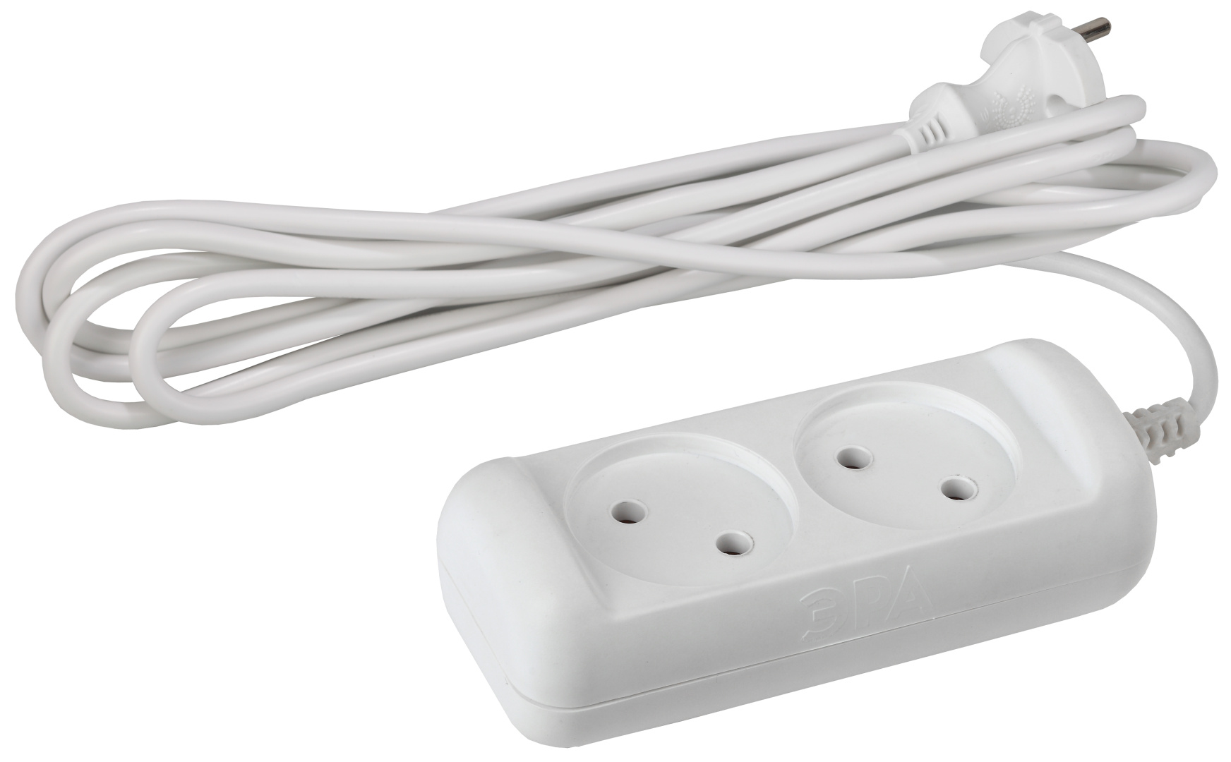 Компактный удлинитель ЭРА U-2-5m-2x1 на 2 розетки, без заземления, с проводом 5 метров. Можно использовать для мощных электроприборов. Максимальная нагрузка - 10 А / 2200 Вт. Изготовлен из надёжного полипропилена со специальными антипиренами, препятствующими горению. Прочный и гибкий двухжильный провод ПВС 2x1мм2. Удобная вилка и аккуратный внешний вид с закруглёнными углами. Эксплуатируется при температурах в помещении от +5 до +40 С.