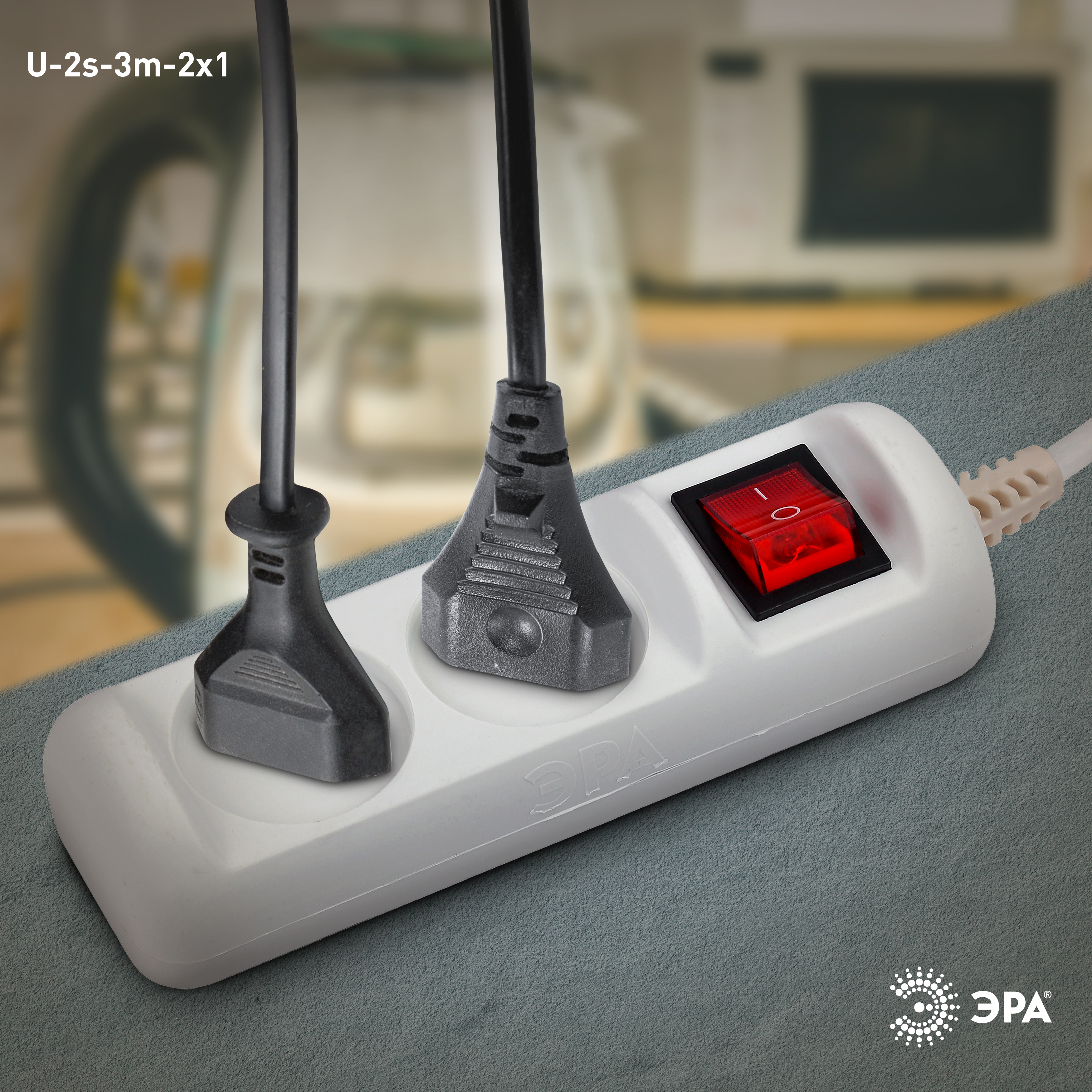 Удлинитель электрический Эра U-2s-3m-2x1 без заземления, с выключателем, ПВС, 2x1мм2, 2 розетки, 3м. Рассчитан на максимальную мощность 10А/2200 Вт. Удлинитель Эра станет Вашим надежным помощником, если Ваши любимые электроприборы находятся далеко от розеток. Провод в удлинителях Эра сделан из 100% меди, что делает его абсолютно пожаробезопасным. Корпус выполнен из ударопрочного и негорючего пластика (полипропилен). Модель удлинителя на 10А позволяет подключить бытовые приборы общей нагрузкой до 2200Вт. Дизайн удлинителя разработан в России командой Эра Style.