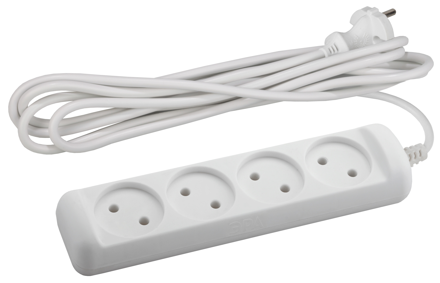 Удлинитель электрический Эра U-4-5m без заземления, ПВС, 2x1мм2, 4 розетки, 5м. Рассчитан на максимальную мощность 10А/2200 Вт. Удлинитель Эра станет Вашим надежным помощником, если Ваши любимые электроприборы находятся далеко от розеток. Провод в удлинителях Эра сделан из 100% меди, что делает его абсолютно пожаробезопасным. Корпус выполнен из ударопрочного и негорючего пластика (полипропилен). В моделях с заземлением у вилки есть кольцо для удобного извлечения из розетки. Модель удлинителя на 10А позволяет подключить мощные бытовые приборы общей нагрузкой до 2200Вт. Не бойтесь включить чайник, обогреватель, микроволновку или другие электроприборы. Толстый провод удлинителя Эра гарантирует полную безопасность. Дизайн удлинителя разработан в России командой Эра Style.