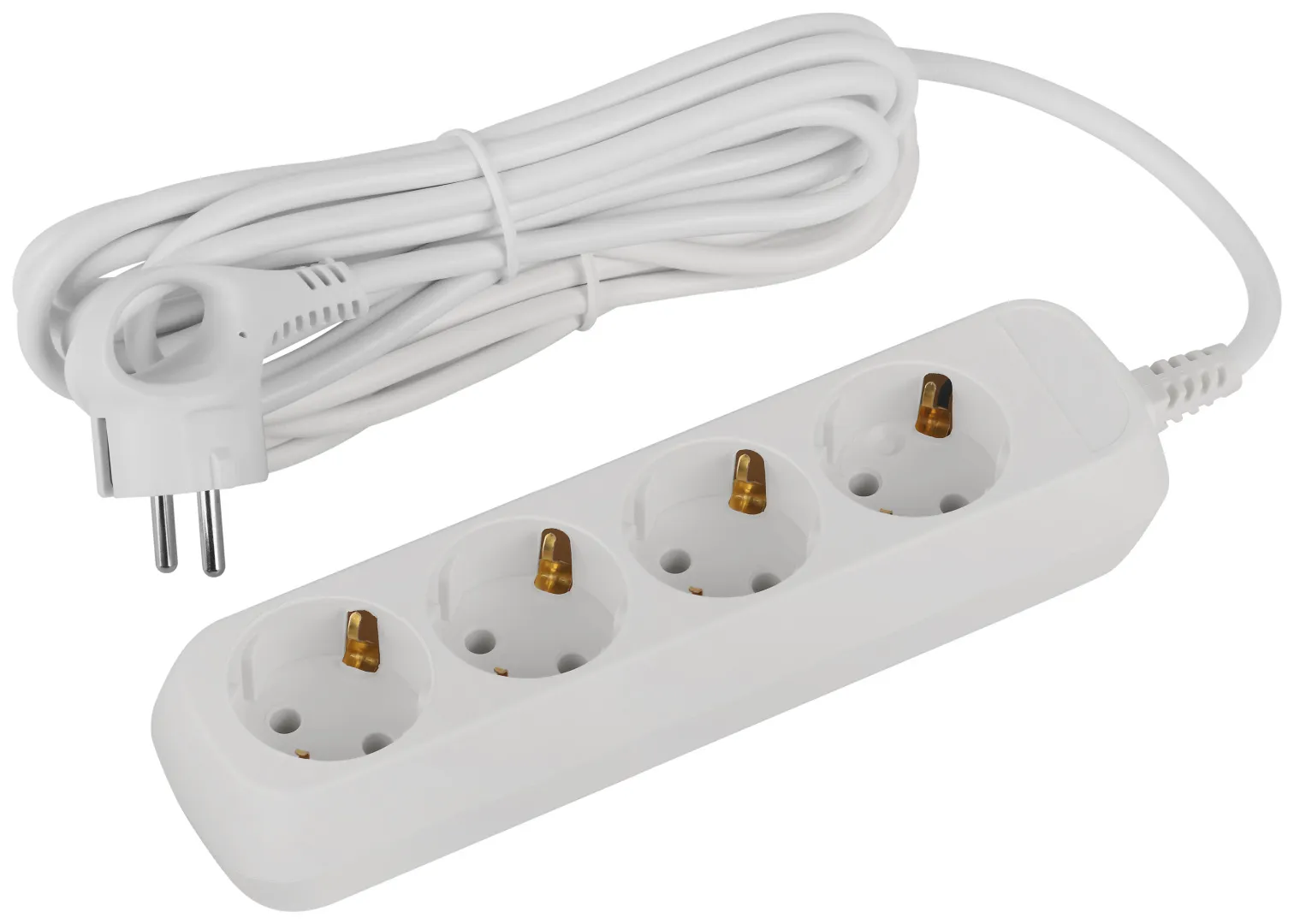 Удлинитель электрический Эра GREENLINE UDL-10-450-E с заземлением, на 4 розетки, провод 5м ПВС 3x0,75мм2. Рассчитан на максимальную мощность 10А/2200 Вт. Удлинитель станет Вашим надежным помощником, если любимые электроприборы находятся далеко от розеток. Корпус выполнен из ударопрочного и негорючего пластика (полипропилен). Вилка обеспечена кольцом для удобного извлечения ее из розетки. Модель удлинителя на 10А позволяет подключить бытовые приборы общей нагрузкой до 2200Вт.