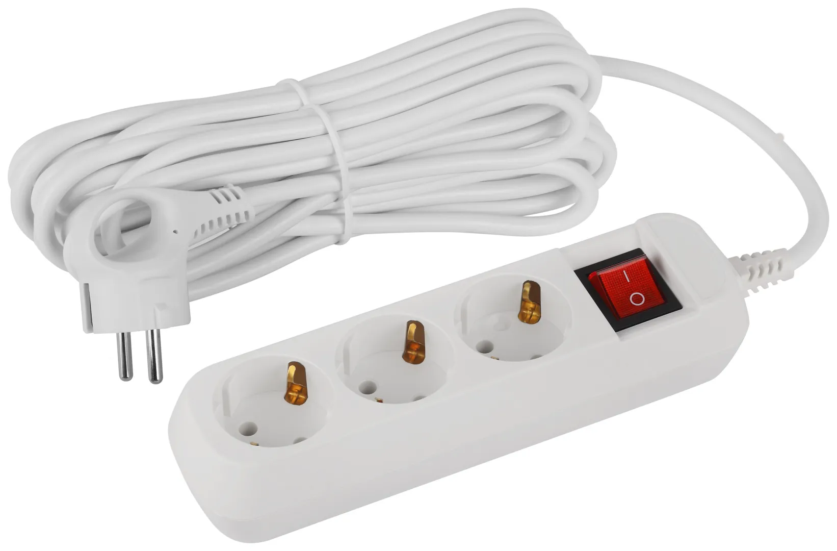 Удлинитель электрический Эра GREENLINE UDL-16-370-ES с заземлением, с выключателем, на 3 розетки, провод 7м ПВС 3x1мм2. Рассчитан на максимальную мощность 16А/3500 Вт. Удлинитель станет Вашим надежным помощником, если любимые электроприборы находятся далеко от розеток. Корпус выполнен из ударопрочного и негорючего пластика (полипропилен). Вилка обеспечена кольцом для удобного извлечения ее из розетки. Модель удлинителя на 16А позволяет подключить бытовые приборы общей нагрузкой до 3500Вт.