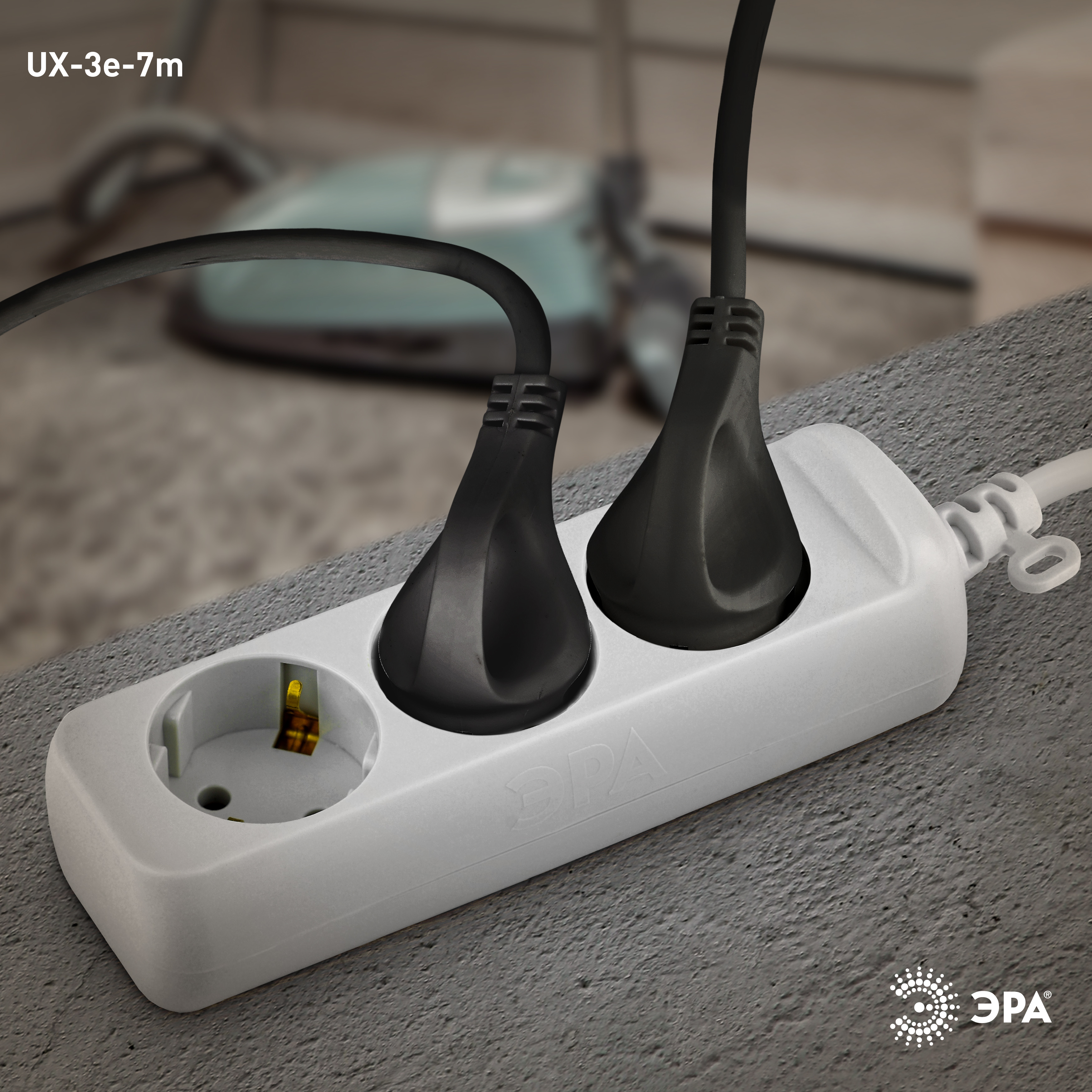 Удлинитель электрический Эра UX-3e-7m с заземлением, ПВС, 3x0,75мм2, 3 розетки, 7 м. Рассчитан на максимальную мощность 10А/2200 Вт. Удлинитель Эра станет Вашим надежным помощником, если Ваши любимые электроприборы находятся далеко от розеток. Провод в удлинителях Эра сделан из 100% меди, что делает его абсолютно пожаробезопасным. Корпус выполнен из ударопрочного и негорючего пластика (полипропилен). Вилка обеспечена кольцом для удобного извлечения ее из розетки. Модель удлинителя на 10А позволяет подключить бытовые приборы общей нагрузкой до 2200Вт. Дизайн удлинителя разработан в России командой Эра Style.