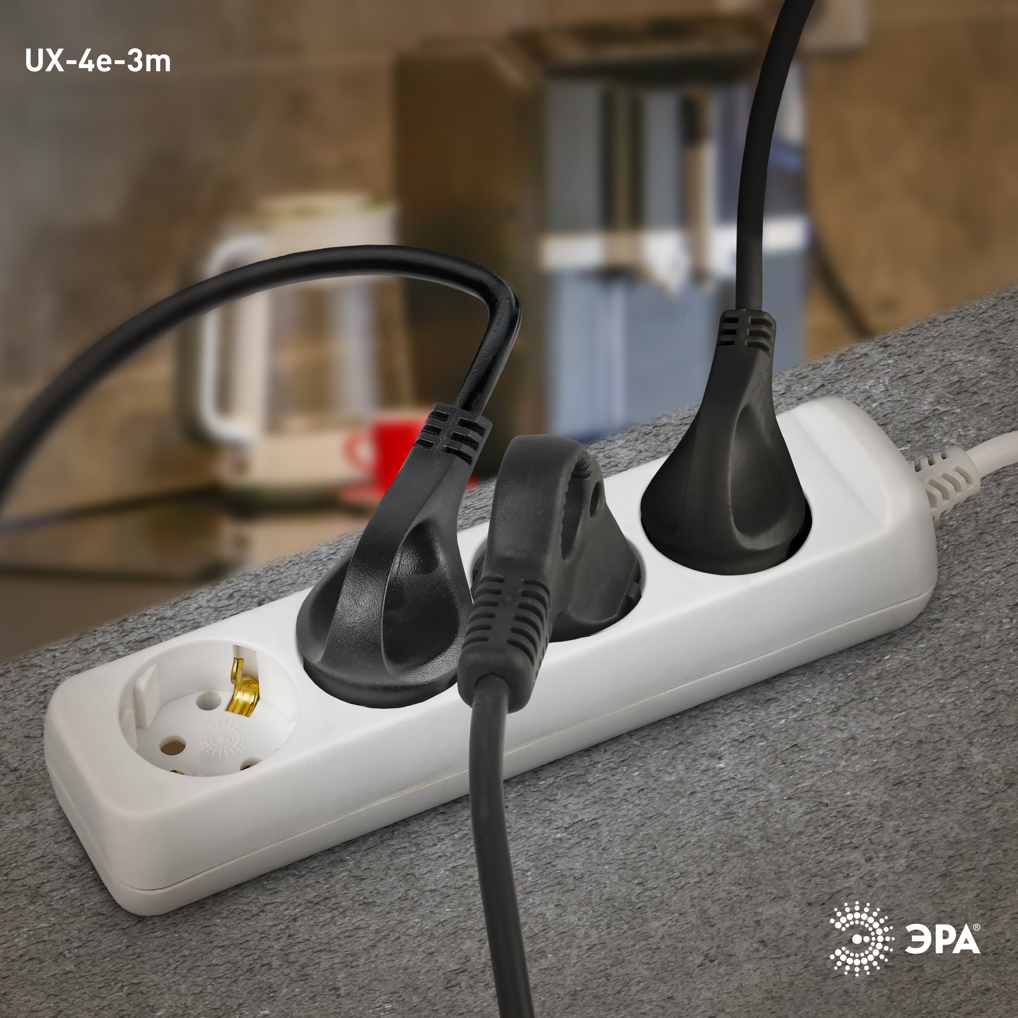 Удлинитель электрический Эра UX-4e-3m с заземлением, ПВС, 3x0,75мм2, 4 розетки, 3 м. Рассчитан на максимальную мощность 10А/2200 Вт. Удлинитель Эра станет Вашим надежным помощником, если Ваши любимые электроприборы находятся далеко от розеток. Провод в удлинителях Эра сделан из 100% меди, что делает его абсолютно пожаробезопасным. Корпус выполнен из ударопрочного и негорючего пластика (полипропилен). Вилка обеспечена кольцом для удобного извлечения ее из розетки. Модель удлинителя на 10А позволяет подключить бытовые приборы общей нагрузкой до 2200Вт. Дизайн удлинителя разработан в России командой Эра Style.