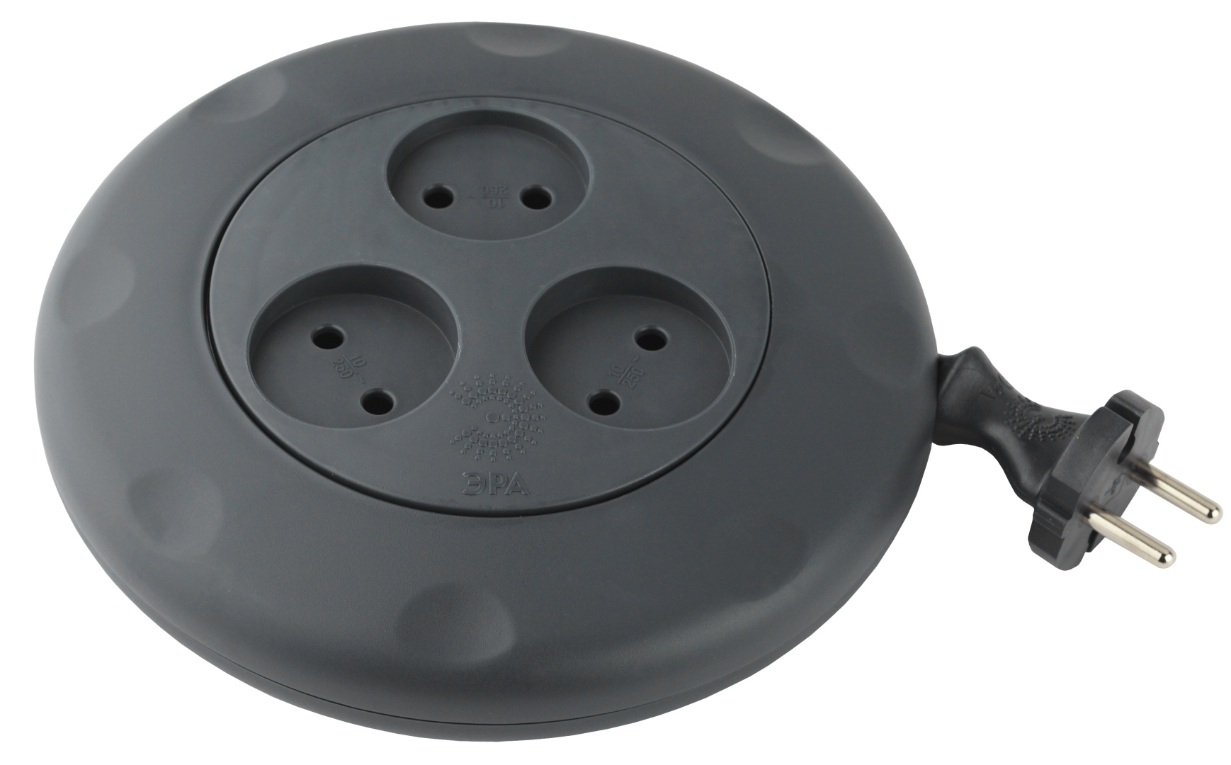 Удлинитель электрический рулетка Эра UR-3-3m-B без заземления, ШВВП, 2x1мм2, 3 розетки, 3 м. Рассчитан на максимальную мощность 10А/2200. Удлинитель Эра станет Вашим надежным помощником, если Ваши любимые электроприборы находятся далеко от розеток. Провод в удлинителях Эра сделан из 100% меди, что делает его абсолютно пожаробезопасным. Корпус выполнен из ударопрочного и негорючего пластика (полипропилен).