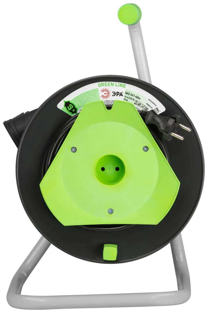 Удлинитель силовой ЭРА GREEN LINE на пластиковой катушке GAZ-2x1-40m, 1 розетка без крышки-IP20 без заземления. Провод 40м ПВС 2х1мм2. Мощность 10А/2200Вт. Используется для работы на строительных площадках или дачных участках. Удобен при работе с приборами, находящимися удаленно от стационарной розетки. Например, газонокосилки, электрические, пилы, триммеры или электродрели. Рама удлинителя сделана из высокопрочной стали, а пластиковой корпус катушки выполнен с применением негорючих добавок.