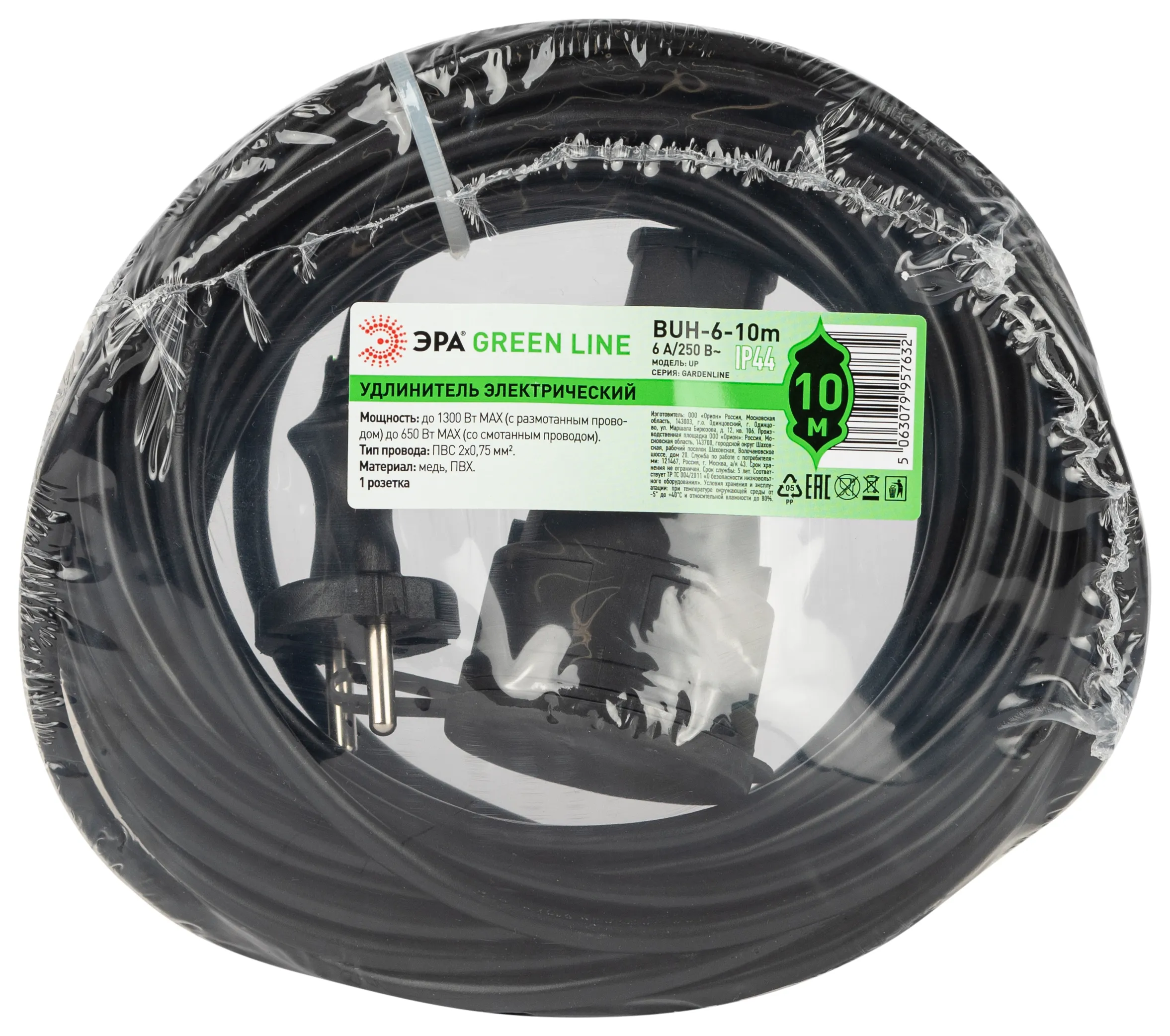Удлинитель силовой ЭРА GREEN LINE в бухте BUH-6-10m без заземления, 1 розетка с крышкой - IP44, провод 10м ПВС 2х0,75мм2. Мощность 6А/1300Вт. Используется для работы на строительных площадках или дачных участках. Удобен при работе с приборами находящимися удаленно от стационарной розетки. Например, газонокосилки, электрические пилы, триммеры или электродрели.