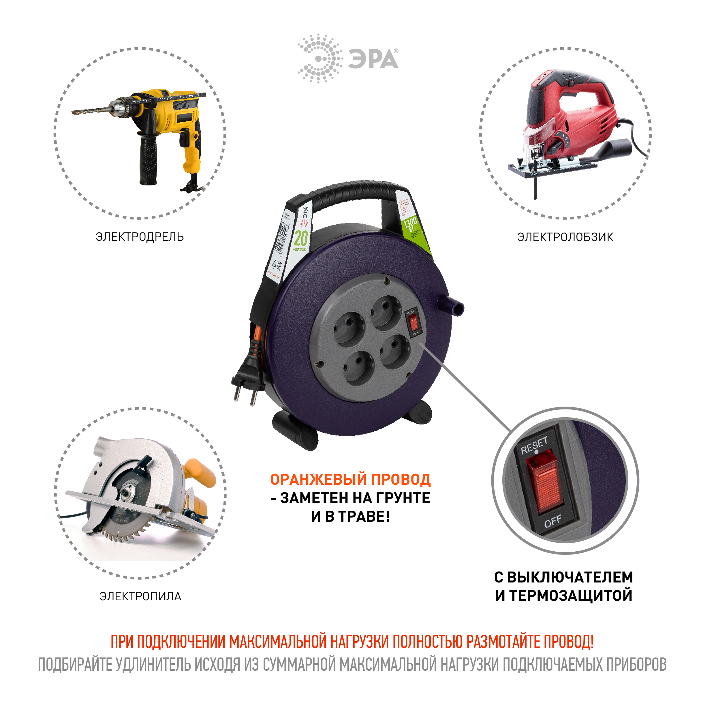 Силовой удлинитель ЭРА BPx-4-2x0,75-20m в закрытом корпусе без заземления, с выключателем, 4 розетки, 20м, ПВС 2x0,75мм2, 6А позволяет легко подключить удаленное на расстоянии от стационарной розетки электрооборудование суммарной мощностью до 1,3КВт. Закрытый корпус обеспечивает удобное и безопасное использование, а также хранение удлинителя. Удобная ручка позволяет легко передвигать удлинитель и устанавливать его в нужном для подключения месте.