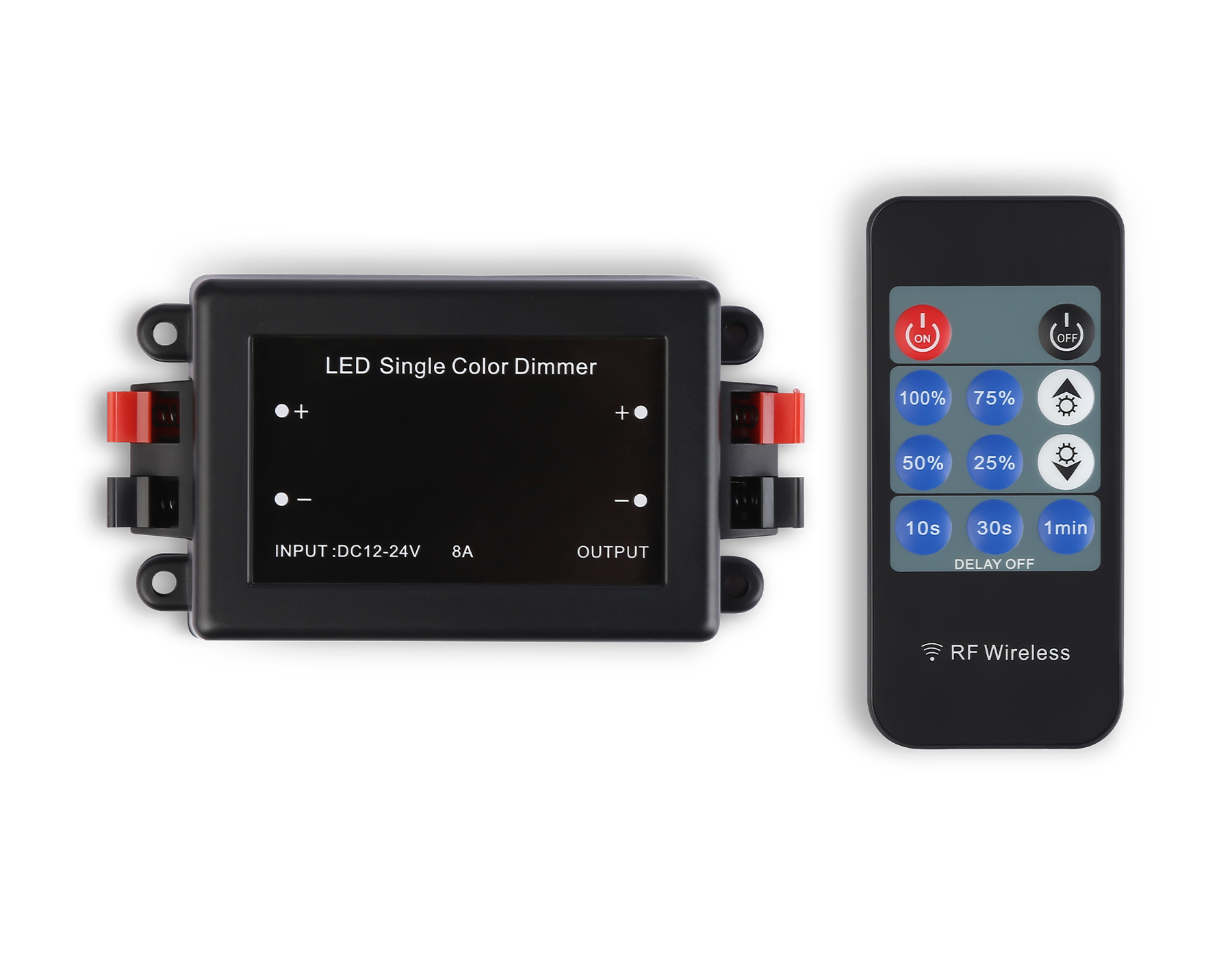 Контроллер диммер для одноцветных светодиодных лент с радио пультом 2.4G 8A 12V 96W/24V 192W GS11001 GS11001 контроллер диммер 8A 12V 96W/24V 192W (ПДУ Радио 2.4G CR2025)