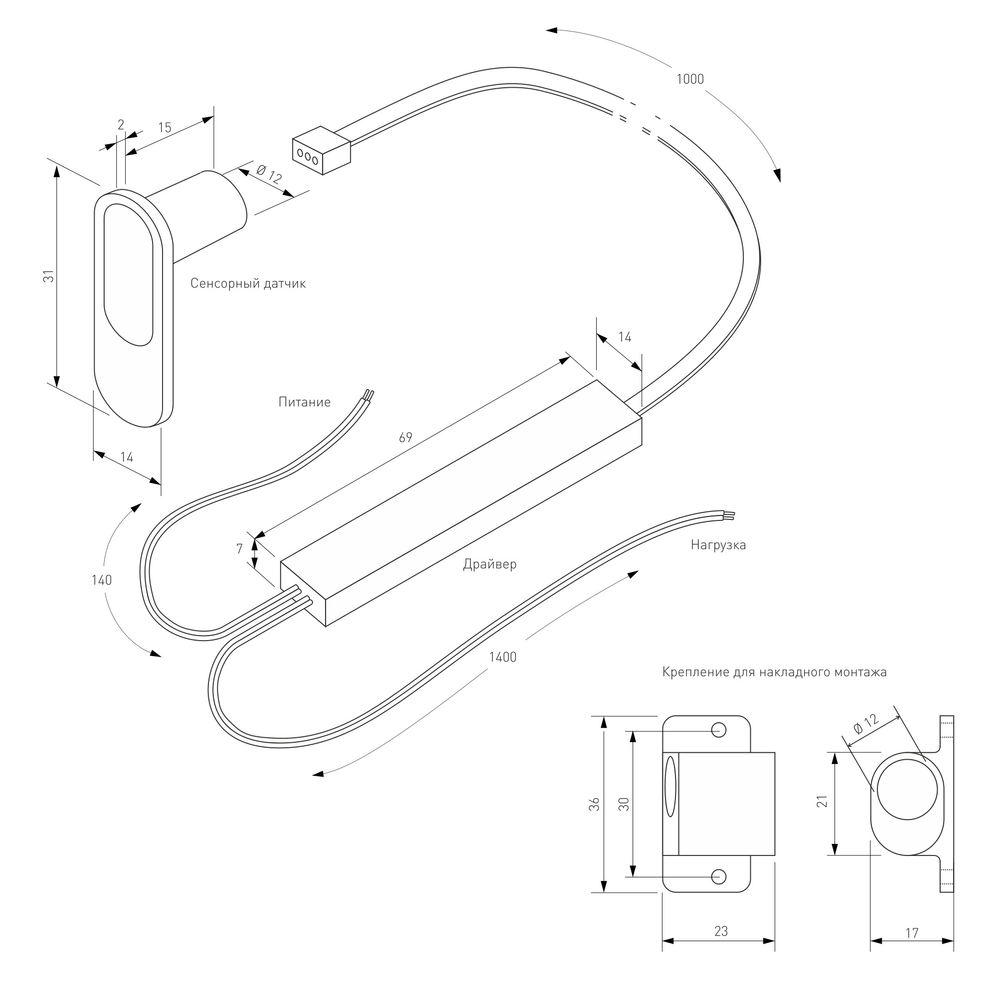 Выключатель с датчиком касания с функцией диммирования 12/24V 60/120W 95001/01 Elektrostandard a067100