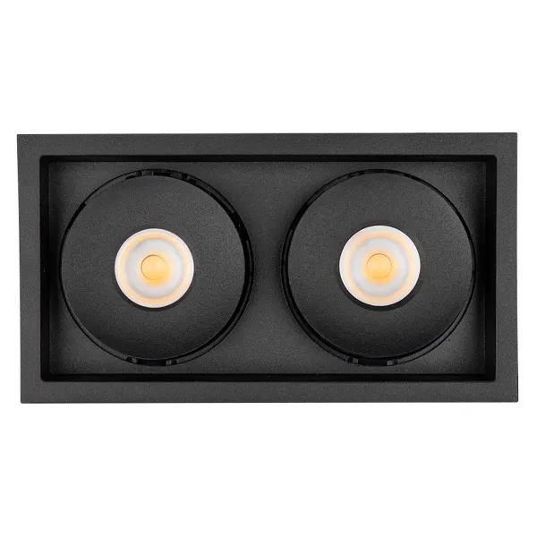 Встраиваемый поворотный светильник для потолка. Мощность 2x9W, цвет ДНЕВНОЙ 4000K, св.поток 1260лм, угол 45°, RA>90. Корпус прямоугольный черный. Питание AC180-240V. Размеры LxWxH 148x80x90мм. Установка в отверстие 140x70мм. Драйвер в комплекте 2 шт (30-45V, 220mA).