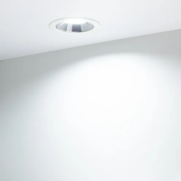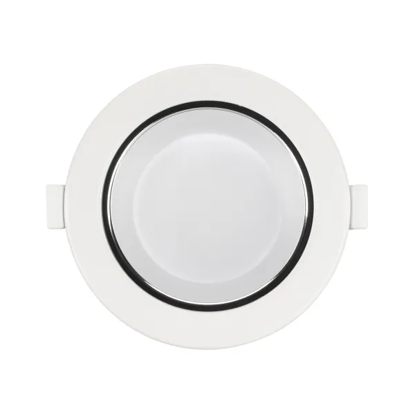 Светильник даунлайт с изменяемой цветовой температурой и переключателем на корпусе. Мощность 10 Вт, св. поток 880 лм, 88 лм/Вт, белый 6000К, или дневной 4000К, или теплый 3000К (выбор цвета свечения при установке, фиксированный), CRI>80, угол 80°, напряжение питания 230 В. Белый круглый корпус из алюминия, степень защиты IP20. Размер: диаметр 113 мм, высота 59 мм. Монтаж встраиваемый, установочное отверстие: диаметр 90-102 мм. Драйвер 18-35 В, 350 мА, пульсация <0,7%.