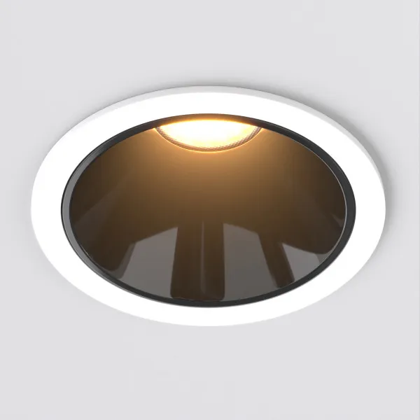 Встраиваемый светильник даунлайт. Мощность 23.3 Вт, св. поток 1995 лм, 86 лм/Вт, теплый 3000 K, CRI>90, UGR<16, угол 30°, напряжение питания 230 В. Белый круглый корпус из алюминия, степень защиты IP20. Размер: диаметр 90 мм, высота 93 мм. Монтаж встраиваемый, установочное отверстие: диаметр 82 мм. Драйвер 30-40 В, 600 мА, пульсация <1%.