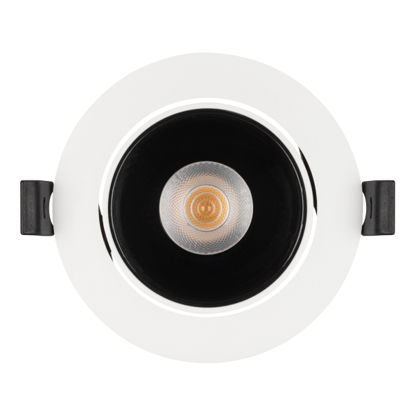 Встраиваемый поворотный светильник даунлайт. Мощность 12 Вт, св. поток 890 лм, 75 лм/Вт, теплый 3000 K, CRI>90, UGR<16, угол 32°, напряжение питания 230 В. Белый круглый корпус из алюминия, степень защиты IP20. Размер: диаметр 102 мм, высота 70 мм. Монтаж встраиваемый, установочное отверстие: диаметр 95 мм. Драйвер 20-40 В, 300 мА, пульсация <2%.