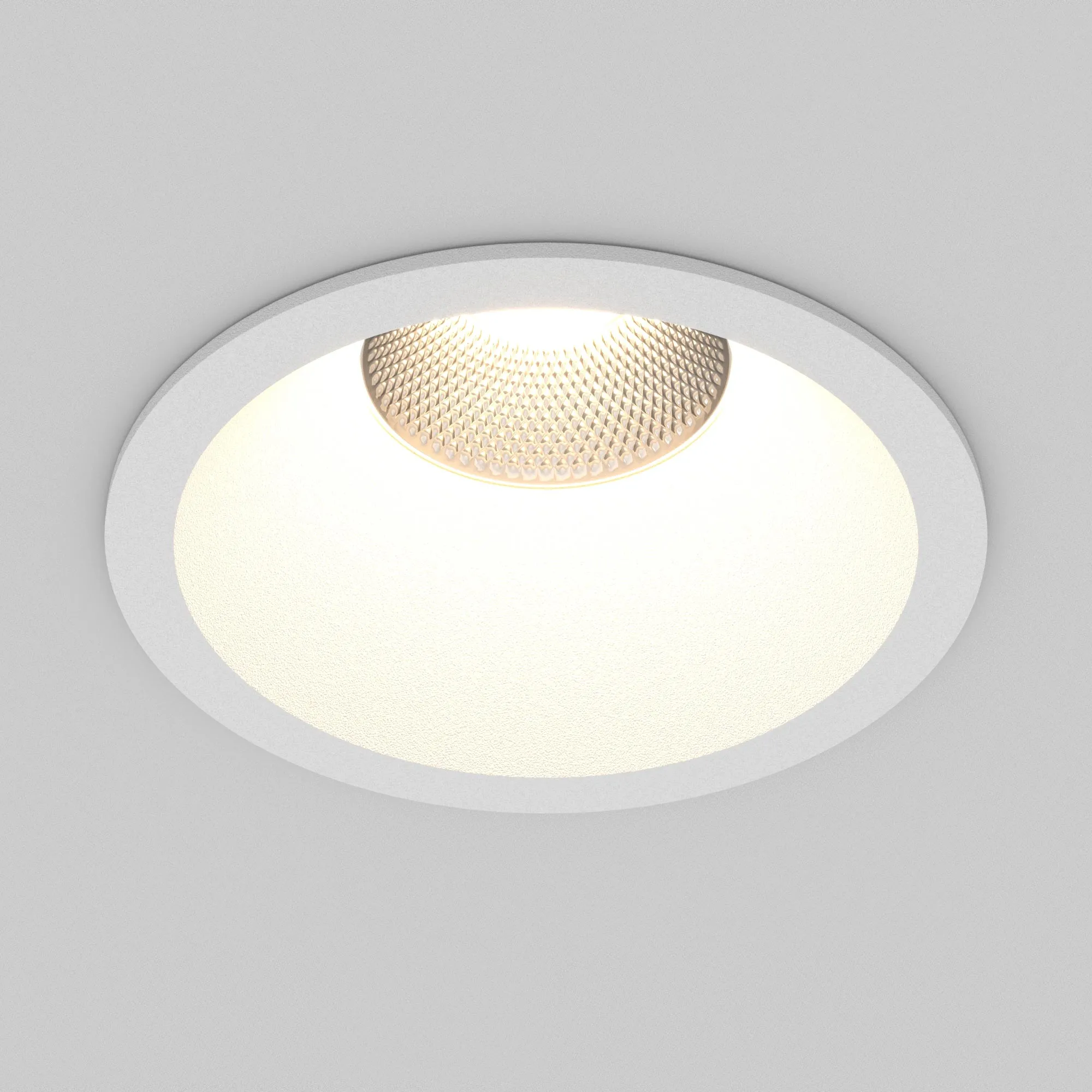 Встраиваемый светильник даунлайт. Мощность 10 Вт, св. поток 980 лм, 98 лм/Вт, тёплый 3000 K, CRI>90, угол 24°, напряжение питания 230 В. Белый круглый корпус из алюминия, степень защиты IP20. Размер: диаметр 82 мм, высота 53 мм. Монтаж встраиваемый, установочное отверстие: диаметр 75 мм. UGR<14. Драйвер 30-42 В, 250 мА, пульсация <2%.