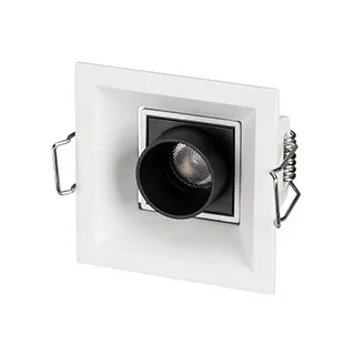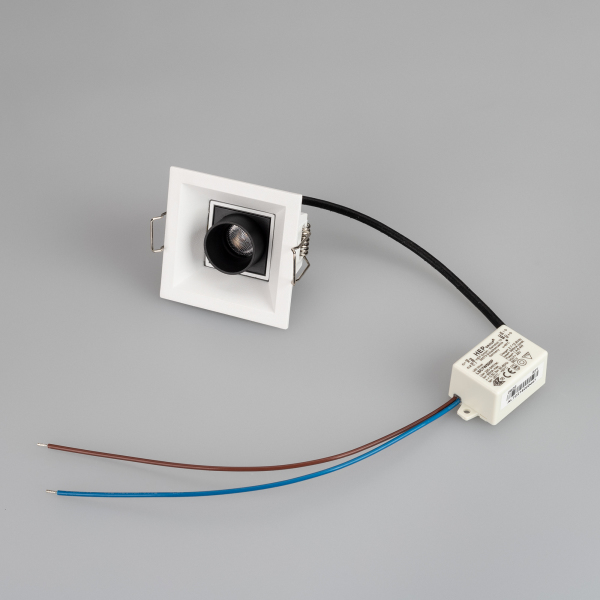 Встраиваемый поворотный светильник. Мощность 3 Вт, св. поток 180 лм, 60 лм/Вт, теплый 3000 K, CRI>98, угол 30°, напряжение питания 230 В. Белый прямоугольный корпус из алюминия, экран PMMA, степень защиты IP20. Размер: длина 67 мм, ширина 67 мм, высота 50 мм. Монтаж встраиваемый, установочное отверстие длина 60 мм, ширина 60 мм. Драйвер 3-12 В, 500 мА, пульсация <1%.