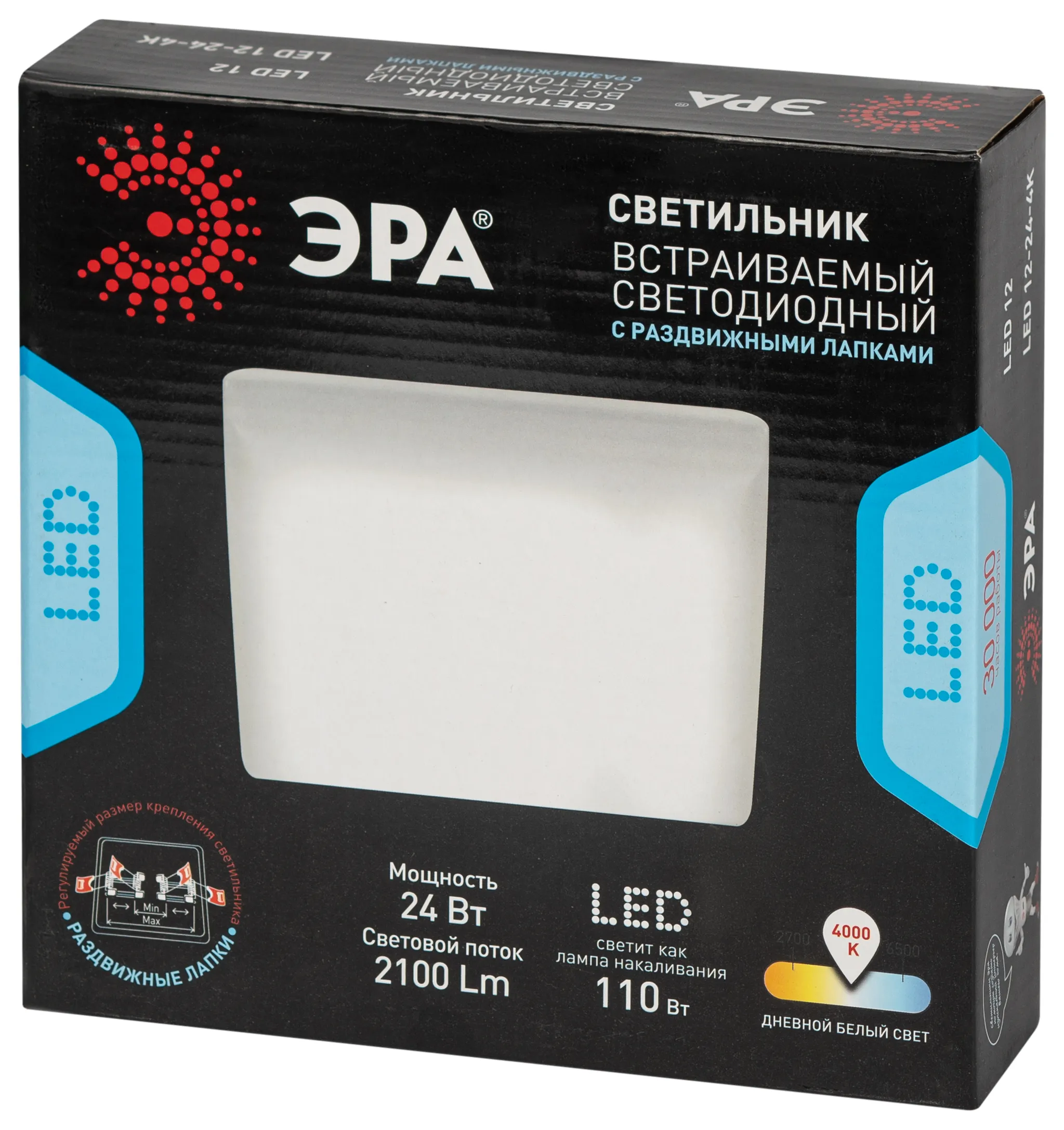 Встраиваемые точечные светильники LED 12-24-4K – прекрасное решение для самых разных помещений в Вашем доме или квартире. С помощью встраиваемых светильников можно подсвечивать от рабочего места до пространства для готовки на кухне. LED 12-24-4K выполнен из металла, отличающегося своими прочностью и надежностью. Внешний размер светильника - 170*170*21 миллиметров, а монтажный - регулируемый: 55-140 миллиметров. Степень защиты светильника - IP20, она дает возможность устанавливать его в разных помещениях, кроме тех, где повышена влажность. Тип рассеивателя - матовый, он способствует приятному и мягкому распространению света в комнате. Светильник обладает цветовой температурой в 4000К, что эквивалентно нейтральному дневному свету. Световой поток точечного светильника составляет 2 100 Лм. Для данной модели не нужна лампа, LED 12-24-4K работает при помощи встроенных светодиодов, срок службы которых составляет 30 000 часов. Мощность составляет 24 Вт. Светильник белого цвета, благодаря чему его можно размещать в самых разных по стилю интерьерах: минимализм, хай-тек, модерн, контемпорари или скандинавский. После установки Ваша комната преобразится и наполнится приятной атмосферой.