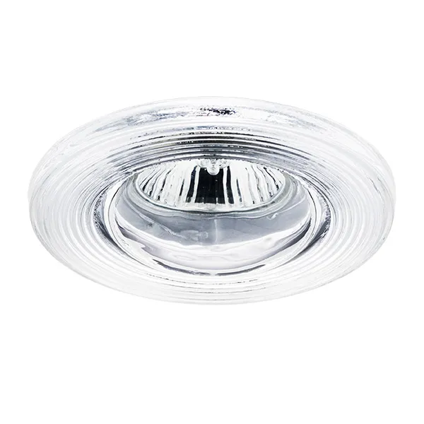 Врезное отверстие: d75 h60; Внешние габариты: D95 H15; Материал - основание/плафон: металл / стекло; Цвет-основание/плафон: белый/прозрачный; Лампа: 12В MR16 Gu5.3 DICHROIC max 50Вт;
