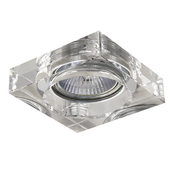 Врезное отверстие: d60 h60; Внешние габариты: 80x80 H25; Материал - основание/плафон: металл / стекло; Цвет-основание/плафон: хром/прозрачный; Лампа: 12В/220В MR16/HP16 Gu5.3/GU10 max 50Вт;