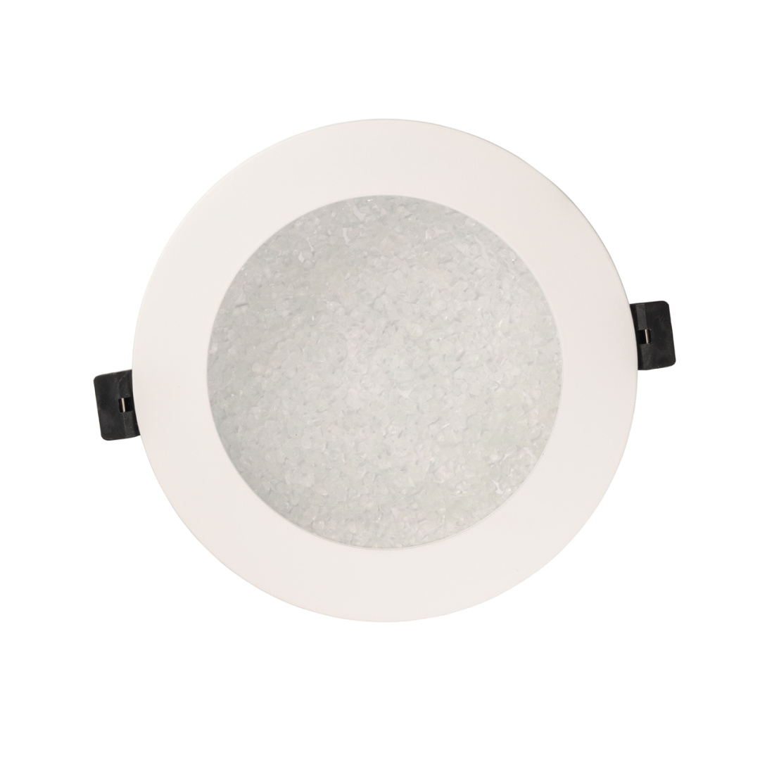 Основание светильника выполнено из сплава алюминия и окрашено в белый цвет.Светодиодные источники света типа SMD Strip закрыты прозрачным стеклом. Цветная стеклянная крошка.