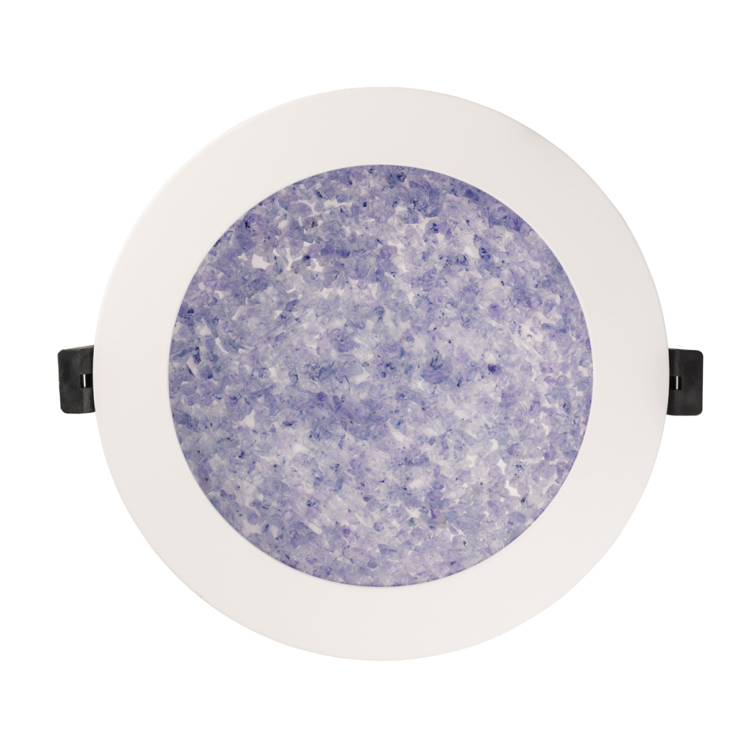 Основание светильника выполнено из сплава алюминия и окрашено в белый цвет.Светодиодные источники света типа SMD Strip закрыты прозрачным стеклом. Цветная стеклянная крошка.