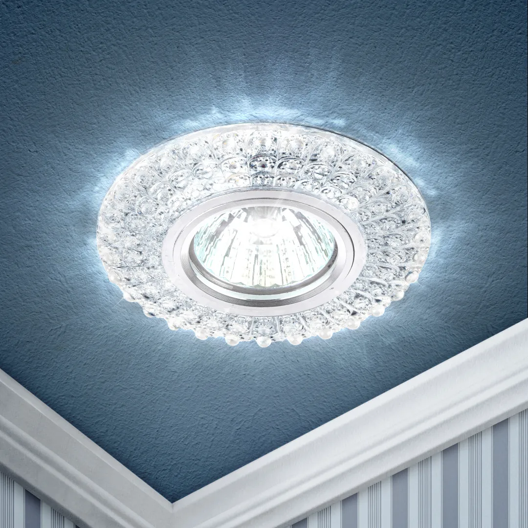 Встраиваемый светильник DK LD2 SL/WH со светодиодной подсветкой станет прекрасным решением для любого помещения: его можно разместить в спальне, в детской или на кухне. Светильник с подсветкой можно использовать как в качестве основного освещения, так и для создания акцентов в определенных зонах помещения. Благодаря скрытой части корпуса светильники можно встраивать в потолок или стены, создавая разный дизайн помещений. Встраиваемый светильник ЭРА с ярким дизайном подойдет для помещений с разным интерьером: от лофта до модерна, классицизма или минимализма. Прозрачный корпус светодиодной подсветки выполнен из полимера, а цветовая температура составляет 4000К. Такая температура оптимальна для глаз и не заставляет их испытывать дискомфорт. Максимальная мощность лампы – 50 Вт. Корпус встраиваемого светильника изготовлен из ударопрочного и стойкого к коррозии материала - алюминия, что делает его особенно удобным в эксплуатации. Диаметр отверстия, требуемого для установки светильника составляет 65 мм, а диаметр самого светильника – 100 мм. Цоколь под лампу GU5.3 в комплекте. Купив Встраиваемый светильник бренда ЭРА, вы останетесь довольны и сможете создать уют в доме! Внимание: лампа не входит в комплектацию.