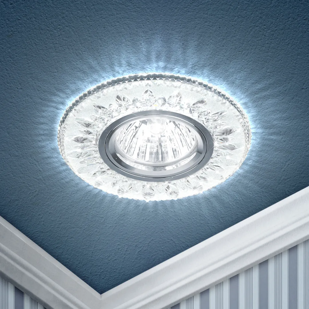 Светильник потолочный встраиваемый точечный для кухни спальни детской GU5.3 / Светодиодная подсветка. Светильник DK LD9 SL/WH со светодиодной подсветкой станет эффектным решением для любого помещения: его можно разместить в спальне, в детской или на кухне. Светильник с подсветкой можно использовать как в качестве основного освещения, так и для создания акцентов в определенных зонах комнаты. Благодаря скрытой части корпуса светильники можно встраивать в потолок или стены, создавая разный дизайн помещений. Светильник ЭРА с ярким дизайном подойдет для помещений с разным интерьером: от минимализма до хай-тека, прованса или скандинавского стиля. Прозрачный корпус светодиодной подсветки выполнен из полимера. Максимальная мощность лампы – 50 Вт. Корпус встраиваемого светильника изготовлен из ударопрочного и стойкого к коррозии металла - алюминия, что делает его особенно удобным в использовании. Диаметр отверстия, требуемого для установки светильника составляет 65 мм, а диаметр самого светильника – 95 мм. Цоколь под лампу GU5.3 в комплекте. Купив светильник бренда ЭРА, вы останетесь довольны и сможете создать уют в доме! Внимание: лампа не входит в комплектацию.