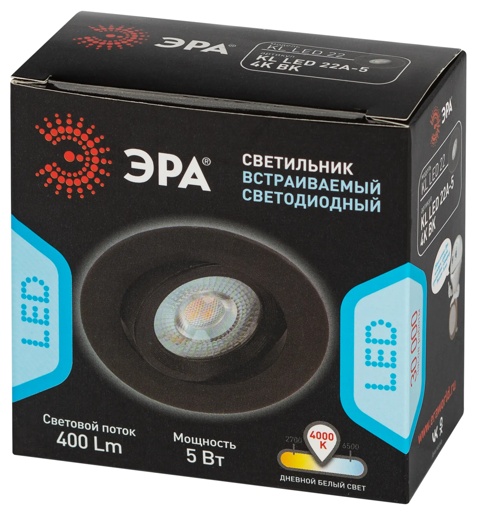 Круглый поворотный светильник KL LED 22A-5 4K BK - эффектное решение для вашей комнаты! Светодиодный светильник можно использовать как в качестве базового освещения, так и для создания акцентов в определенных зонах комнаты. Благодаря скрытой части корпуса светильники можно встраивать в потолок или стены, создавая разный стиль помещений. Светильник ЭРА с приятным дизайном подойдет для помещений с разным интерьером: от лофта до модерна, классицизма или минимализма. Благодаря поворотному механизму у Вас появится уникальная возможность направлять свет в разные точки: например, на кухне осветить варочную панель, а в кабинете место для работы за компьютером. Цветовая температура составляет 4000К, она оптимальна для глаз и не заставляет их испытывать дискомфорт. Максимальная мощность лампы – 5 Вт. Корпус встраиваемого светильника изготовлен из ударопрочного металла, что делает его особенно удобным в использовании. Диаметр отверстия, требуемого для установки светильника составляет 75 мм, а диаметр самого светильника – 90 мм. Купив точечный светильник бренда ЭРА, вы останетесь довольны и сможете создать уют в доме!