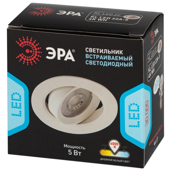 Встраиваемый светильник эра kl led 22a-5 4k wh б0037037