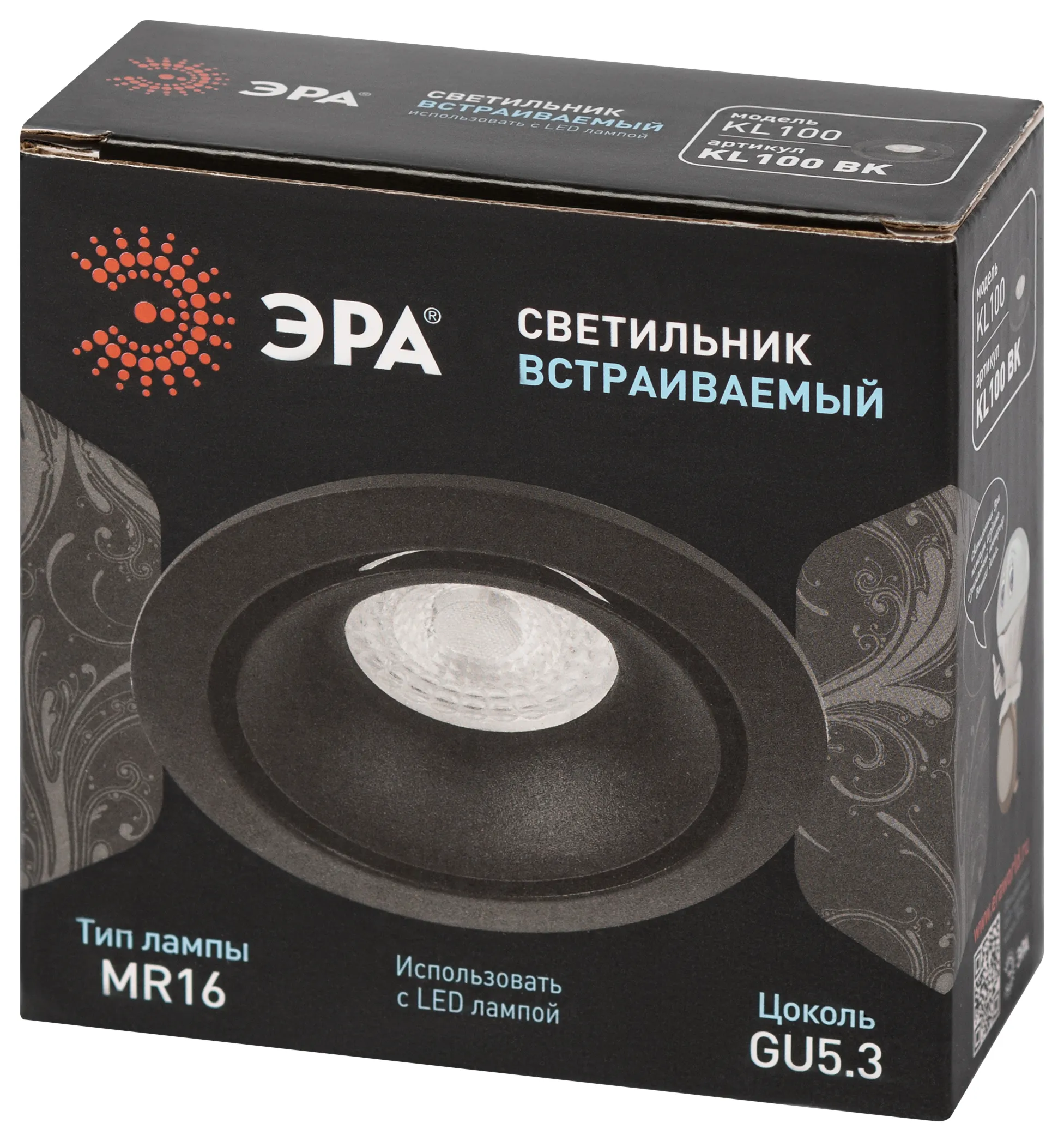 Встраиваемый светильник эра kl100 bk б0055585