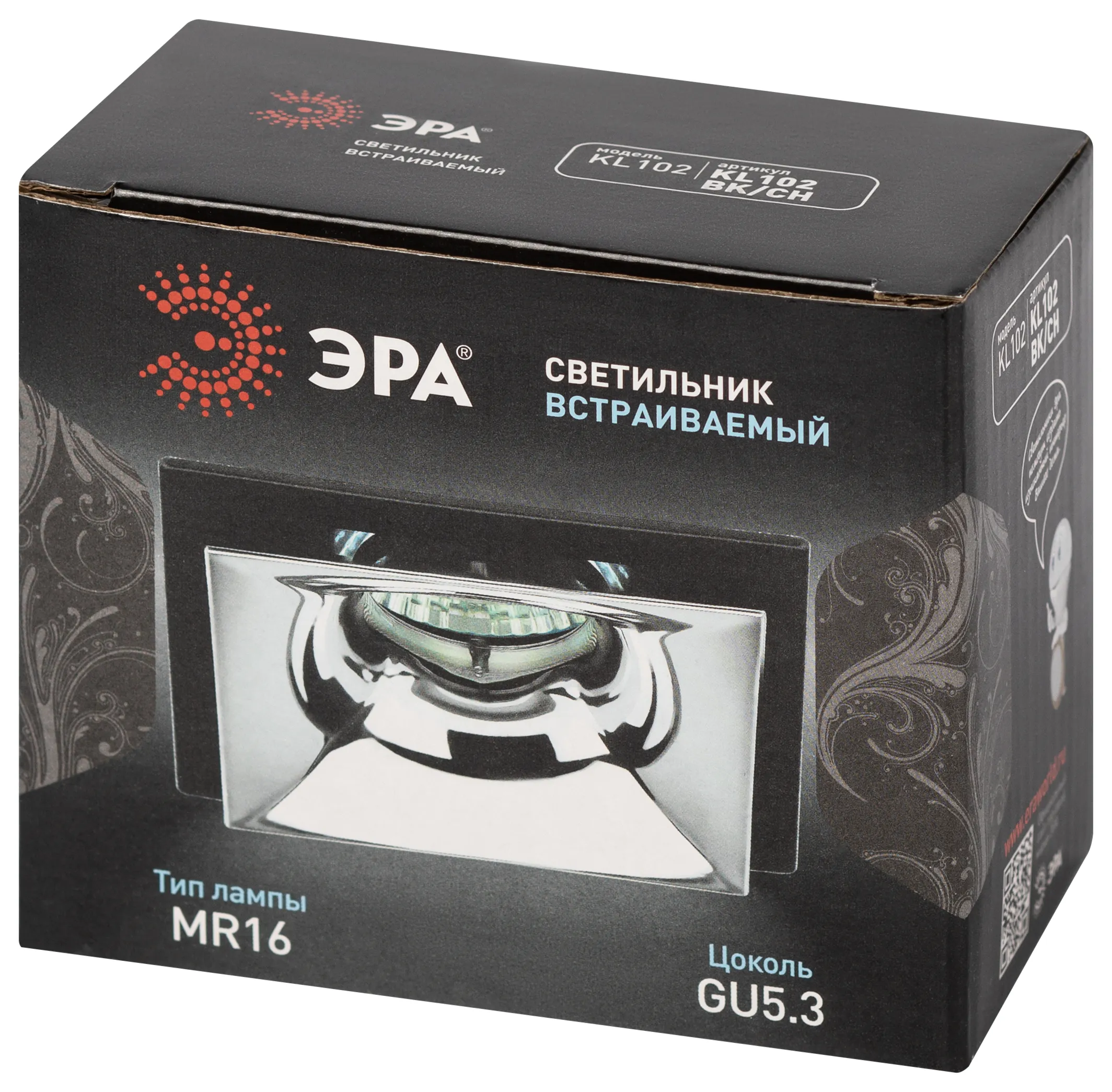Встраиваемый светильник эра kl102 bk/ch б0056356