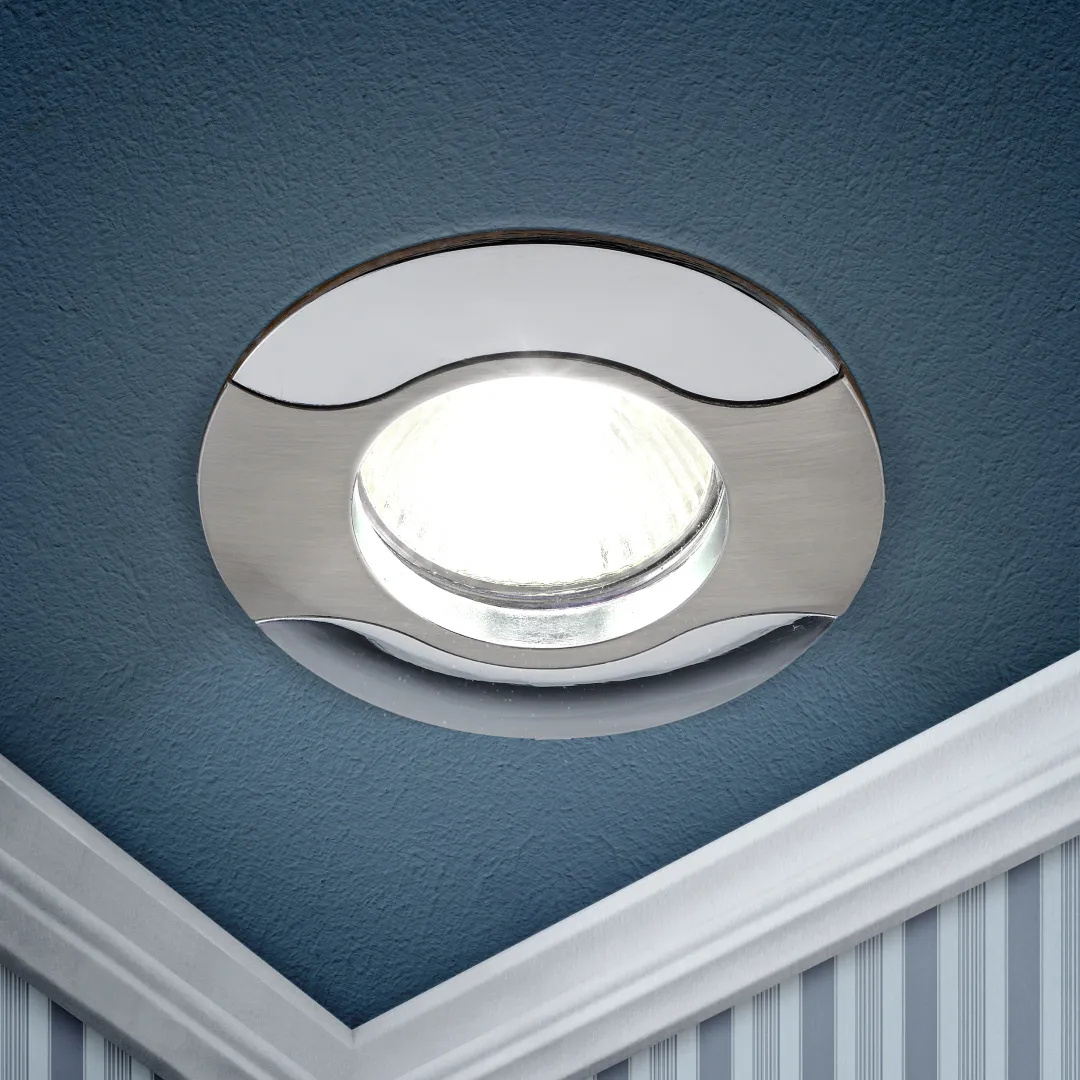 Точечный светильник KL18 SN/CH - замечательное решение для любой комнаты в вашем доме! Встраиваемые светильники можно использовать как для создания главного источника света, так и для создания акцентов в определенных зонах комнаты. Благодаря скрытой части корпуса светильники можно встраивать не только в потолок, но и в стены, создавая разный стиль помещений. Светильник ЭРА с приятным дизайном подойдет для комнат с разным интерьером: от лофта до модерна, классицизма или минимализма. При помощи точечных светильников можно освещать только те участки помещения, которыми вы пользуетесь в данный момент, не затрачивая лишнюю элеткроэнергию. Максимальная мощность лампы составляет 50 Вт. Корпус встраиваемого светильника изготовлен из цинкового сплава, что делает его особенно удобным и надежным в использовании. Диаметр отверстия, требуемого для установки светильника составляет 60 миллиметров, а диаметр самого светильника – 80 миллиметров. Цоколь под лампу GU5.3 входит в комплект. Купив точечный светильник бренда ЭРА, вы останетесь довольны и сможете создать приятную атмосферу и уют в Вашем доме! Внимание: лампа не входит в комплектацию.