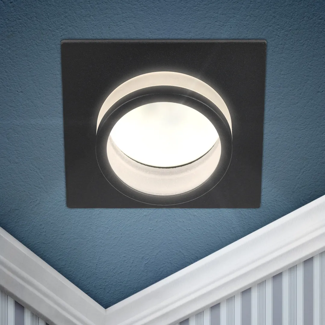 Светильник встраиваемый KL88 BK MR16/GU5.3 - замечательное решение для любой комнаты в вашем доме! Точечные светильники можно использовать как в качестве основного освещения, так и для создания акцентов в определенных зонах комнаты. Благодаря скрытой части корпуса светильники можно встраивать не только в потолок, но и в стены, создавая разный стиль помещений. Светильник ЭРА с приятным дизайном подойдет для комнат с разным интерьером: от лофта до модерна, классицизма или минимализма. При помощи точечных светильников можно освещать только те участки помещения, которыми вы пользуетесь в данный момент, не затрачивая лишнюю элеткроэнергию. Максимальная мощность лампы составляет 12 Вт. Корпус встраиваемого светильника изготовлен из алюминия, что делает его особенно удобным и надежным в использовании. Диаметр отверстия, требуемого для установки светильника составляет 70 миллиметров, а размер корпуса светильника – 80x80 миллиметров. Цоколь под лампу GU5.3 входит в комплект. Купив точечный светильник бренда ЭРА, вы останетесь довольны и сможете создать приятную атмосферу и уют в Вашем доме! Внимание: лампа не входит в комплектацию.