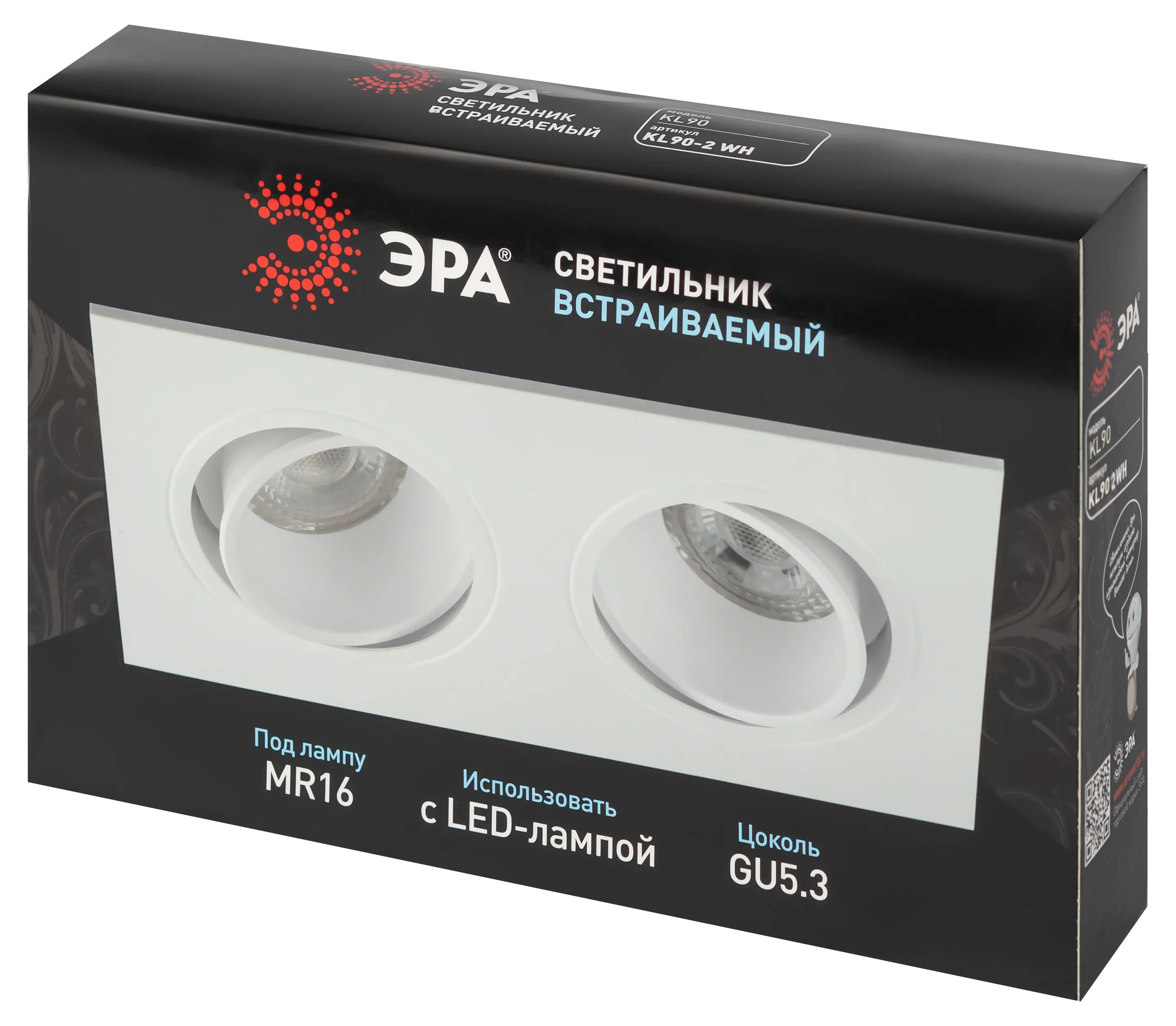Светильник встраиваемый KL90-2 WH MR16/GU5.3 - замечательное решение для любой комнаты в вашем доме! Точечные светильники можно использовать как в качестве основного освещения, так и для создания акцентов в определенных зонах комнаты. Благодаря скрытой части корпуса светильники можно встраивать не только в потолок, но и в стены, создавая разный стиль помещений. Светильник ЭРА с приятным дизайном подойдет для комнат с разным интерьером: от лофта до модерна, классицизма или минимализма. При помощи точечных светильников можно освещать только те участки помещения, которыми вы пользуетесь в данный момент, не затрачивая лишнюю электроэнергию. Максимальная мощность лампы составляет 11 Вт. Корпус встраиваемого светильника изготовлен из термостойкого пластика, что делает его особенно удобным и надежным в использовании. Диаметр отверстия, требуемого для установки светильника составляет 80x160 миллиметров, а размер корпуса светильника – 173x93x29 миллиметров. Цоколь под лампу GU5.3 входит в комплект. Купив точечный светильник бренда ЭРА, вы останетесь довольны и сможете создать приятную атмосферу и уют в Вашем доме! Внимание: лампа не входит в комплектацию.