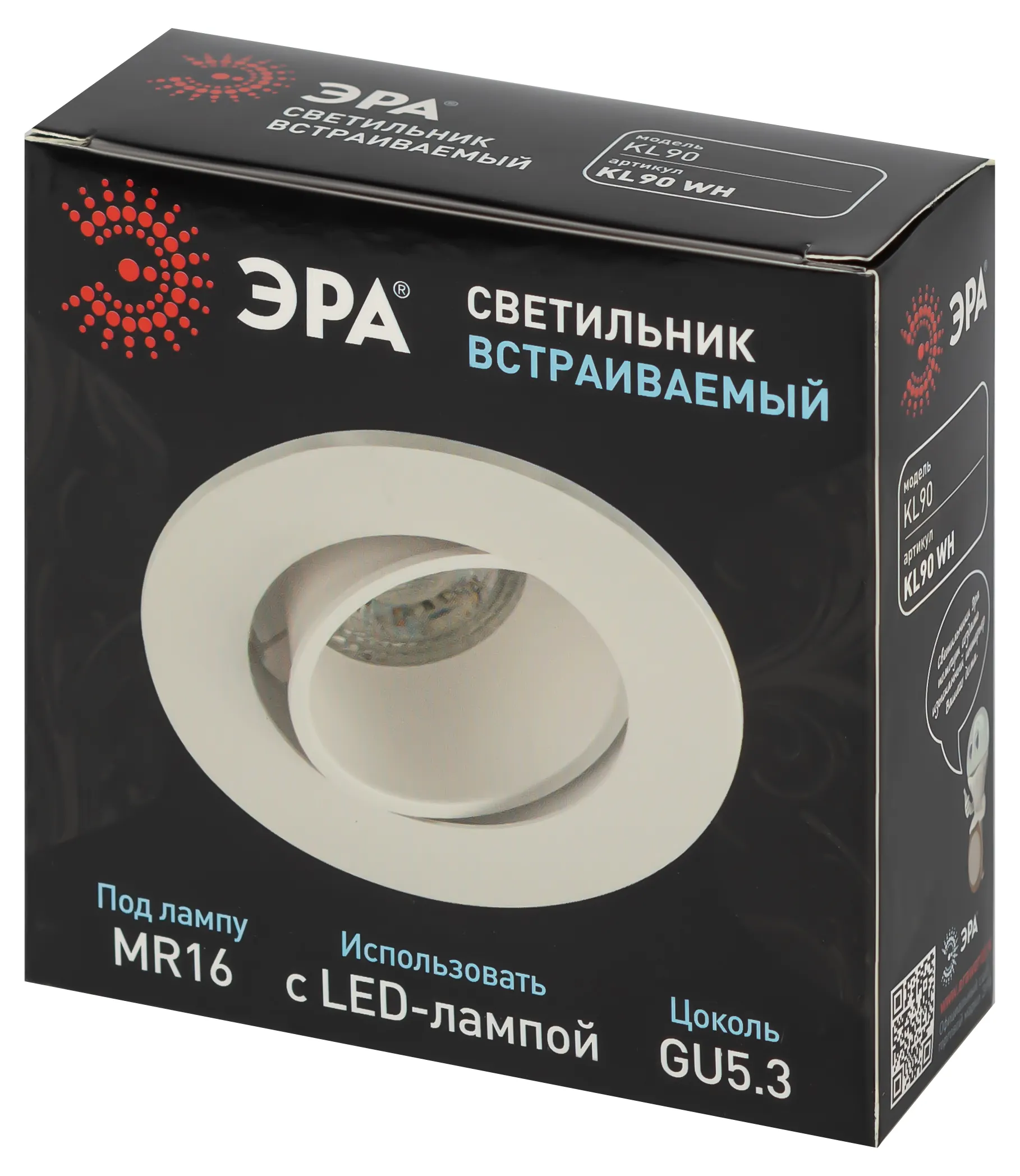Светильник встраиваемый KL90 WH MR16/GU5.3 - отличный выбор для любого помещения в вашей квартире! Точечные светильники подходят как для основного освещения, так и для создания акцентов в определенных зонах комнаты. Благодаря скрытой части корпуса светильники можно встраивать не только в потолок, но и в стены, создавая разный стиль помещений. Светильник ЭРА с приятным дизайном подойдет для комнат с разным интерьером: от минимализма до хай-тека, прованса или скандинавского стиля. При помощи точечных светильников можно освещать только те участки помещения, которыми вы пользуетесь в данный момент, не затрачивая лишнюю электроэнергию. Максимальная мощность лампы составляет 11 Вт. Корпус встраиваемого светильника изготовлен из термостойкого пластика, что делает его особенно удобным и надежным в использовании. Диаметр отверстия, требуемого для установки светильника составляет 75 миллиметров, а размер корпуса светильника – 90x29 миллиметров. Цоколь под лампу GU5.3 входит в комплект. Купив точечный светильник бренда ЭРА, вы останетесь довольны и сможете создать приятную атмосферу и уют в Вашем доме! Внимание: лампа не входит в комплектацию.