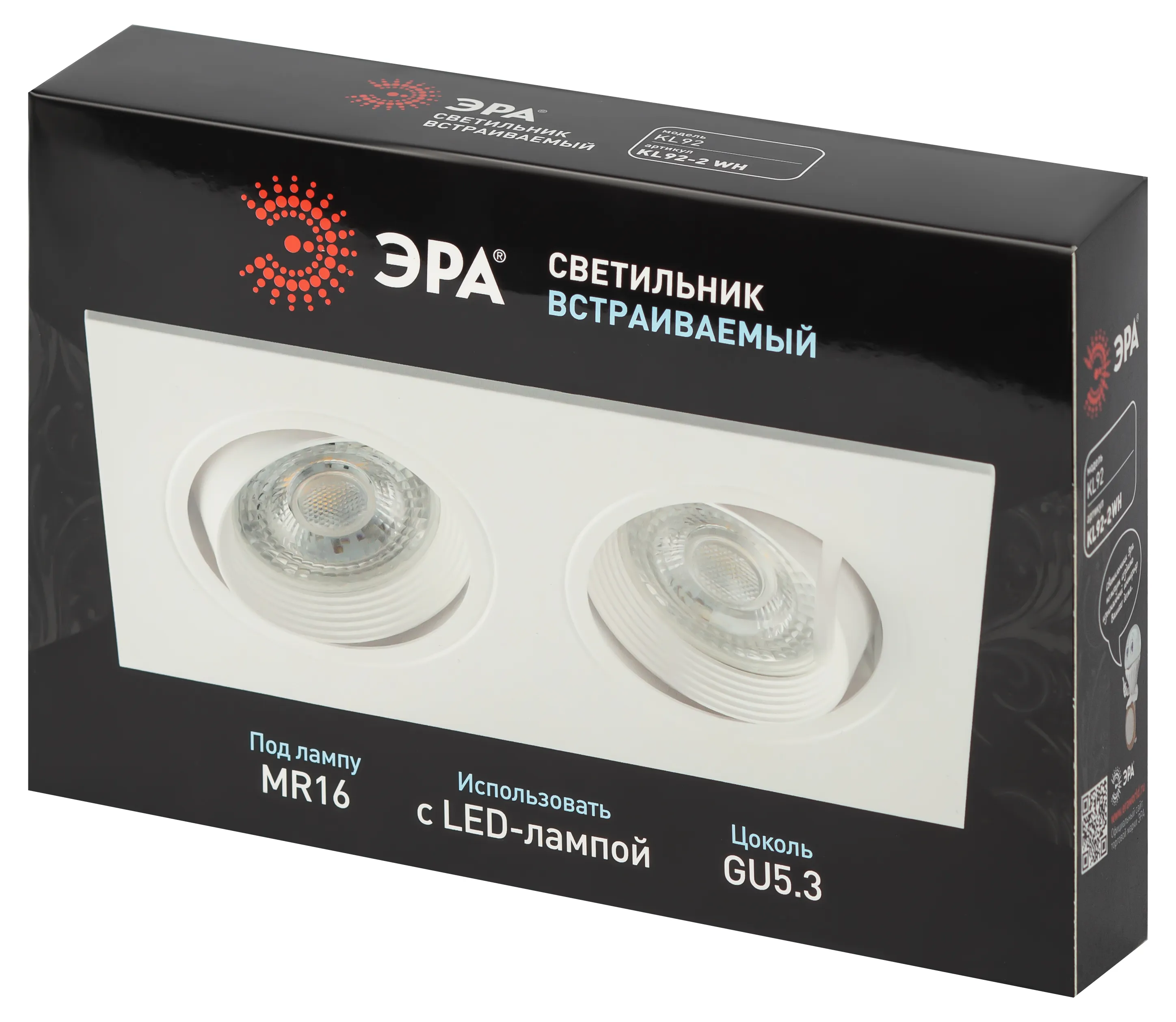 Светильник встраиваемый KL92-2 WH MR16/GU5.3 - отличный выбор для любого помещения в вашей квартире! Точечные светильники подходят как для основного освещения, так и для создания акцентов в определенных зонах комнаты. Благодаря скрытой части корпуса светильники можно встраивать не только в потолок, но и в стены, создавая разный стиль помещений. Светильник ЭРА с приятным дизайном подойдет для комнат с разным интерьером: от лофта до модерна, классицизма или минимализма. При помощи точечных светильников можно освещать только те участки помещения, которыми вы пользуетесь в данный момент, не затрачивая лишнюю электроэнергию. Максимальная мощность лампы составляет 11 Вт. Корпус встраиваемого светильника изготовлен из термостойкого пластика, что делает его особенно удобным и надежным в использовании. Диаметр отверстия, требуемого для установки светильника составляет 80x160 миллиметров, а размер корпуса светильника – 173x93x25 миллиметров. Цоколь под лампу GU5.3 входит в комплект. Купив точечный светильник бренда ЭРА, вы останетесь довольны и сможете создать приятную атмосферу и уют в Вашем доме! Внимание: лампа не входит в комплектацию.