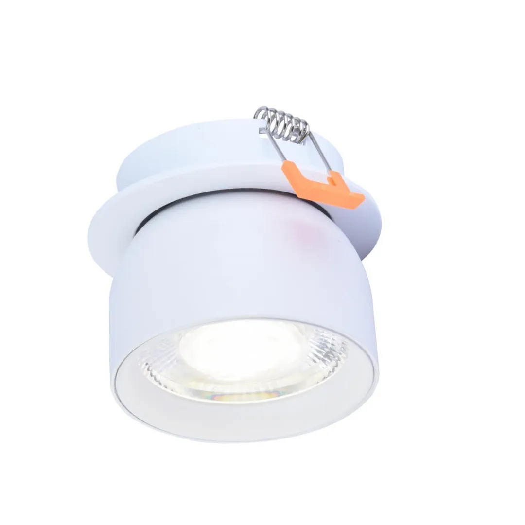 Каркас полусферической формы белого матового цвета, поворотный плафон со встроенным модулем LED, смещен вглубь плафона для создания более направленного потока света.