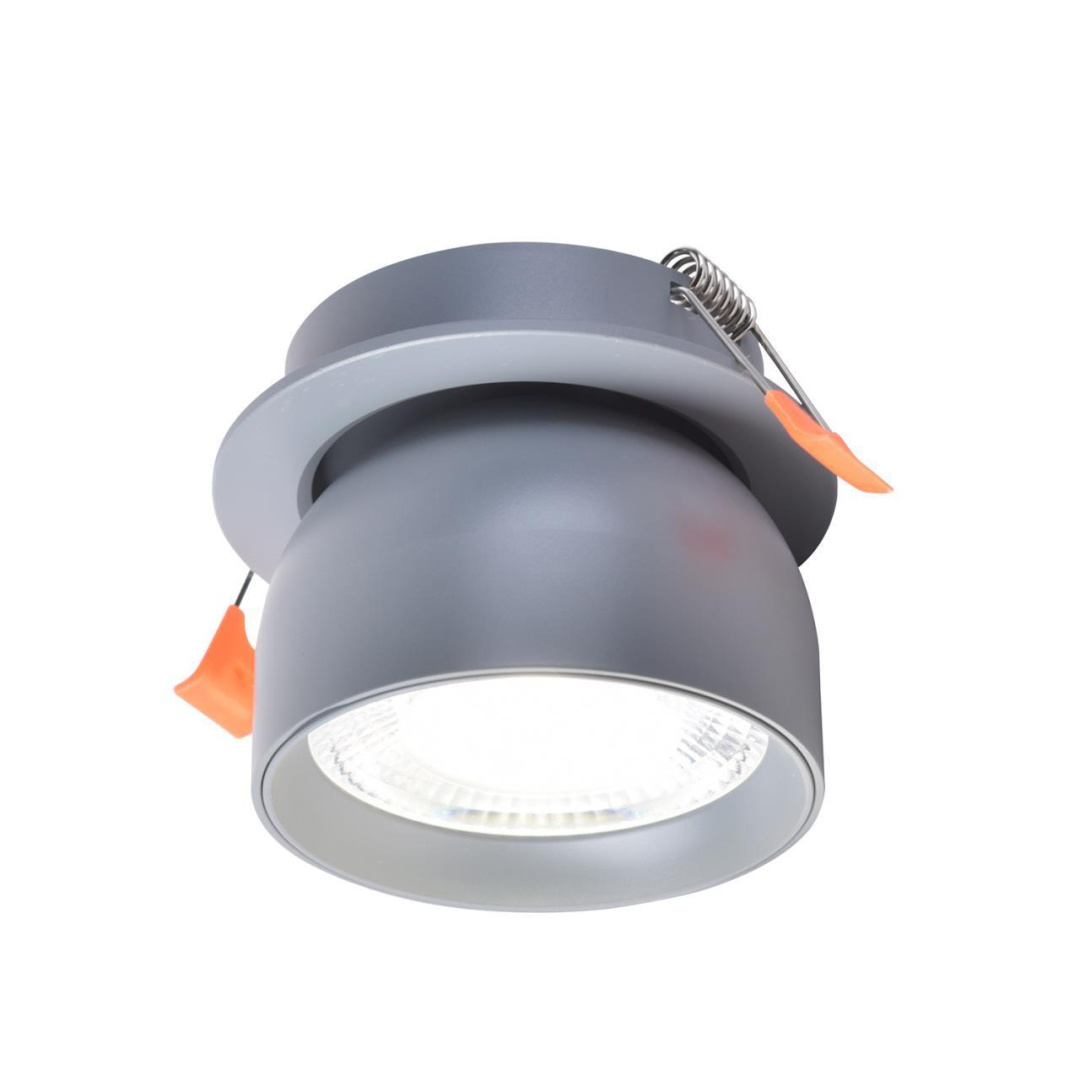 Каркас полусферической формы серого матового цвета, поворотный плафон со встроенным модулем LED, смещен вглубь плафона для создания более направленного потока света.