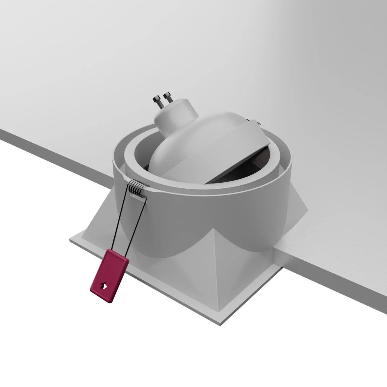 Металлический каркас белого цвета, цоколь GU10, защита IP20.