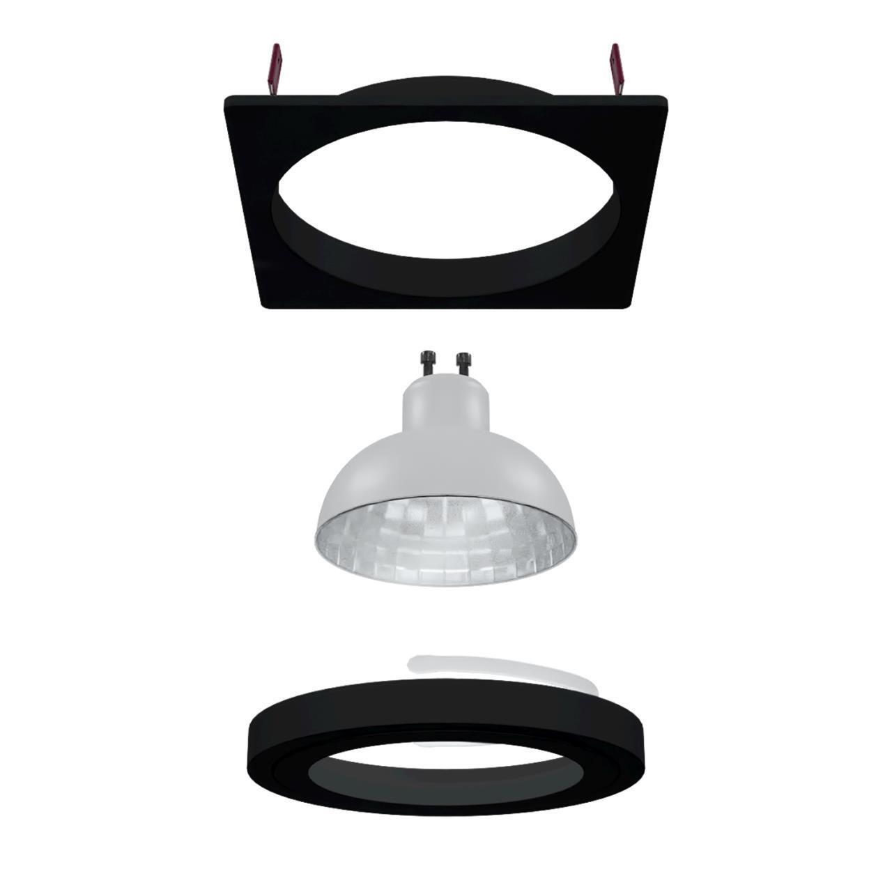 Металлический каркас черного цвета, цоколь GU10, защита IP20.