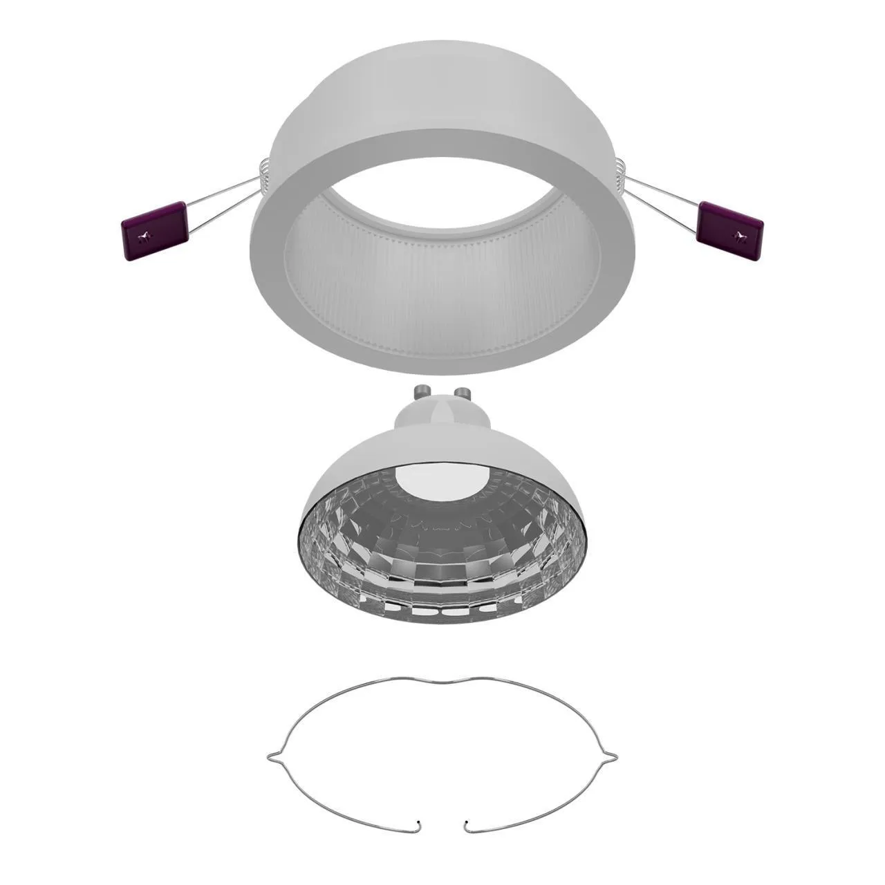 Металлический каркас белого цвета, цоколь GU10, защита IP20.