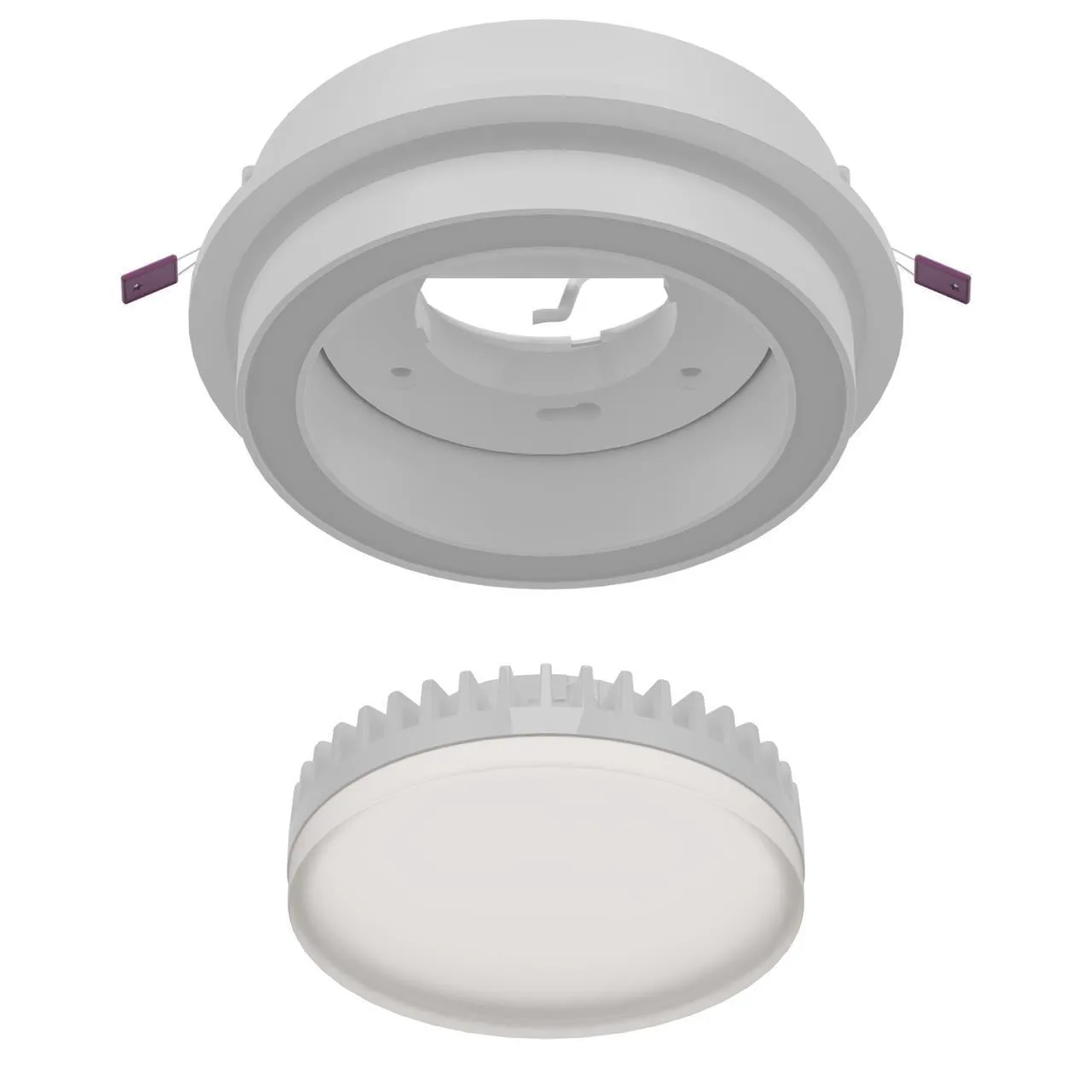 Металлический каркас белого цвета, цоколь GX53, защита IP20.